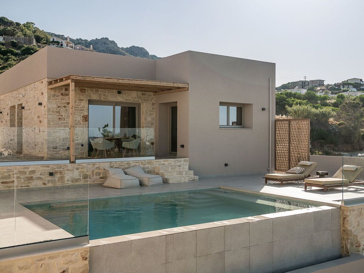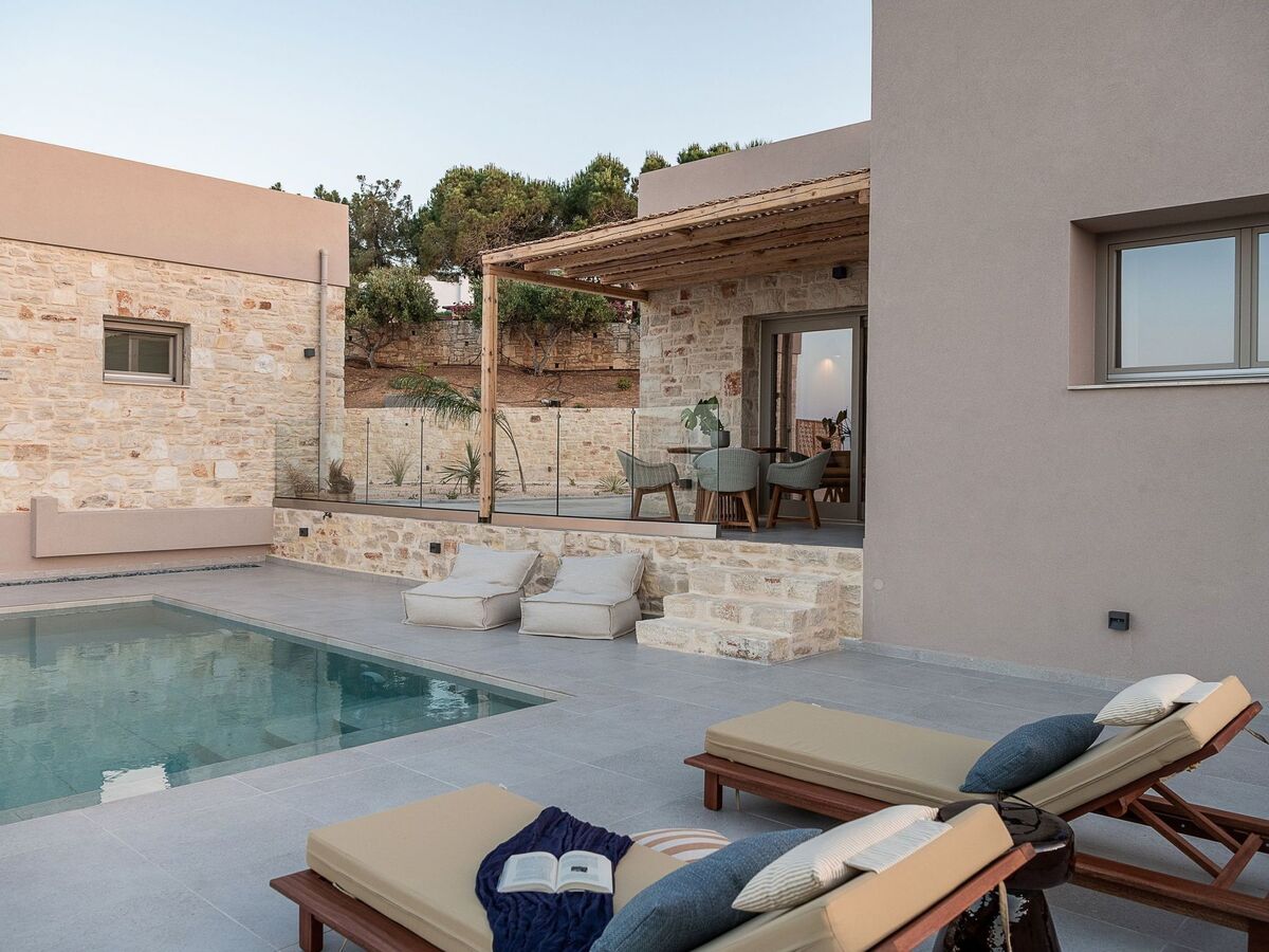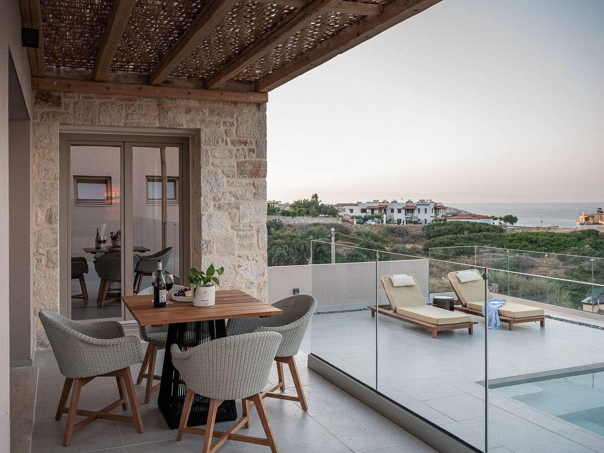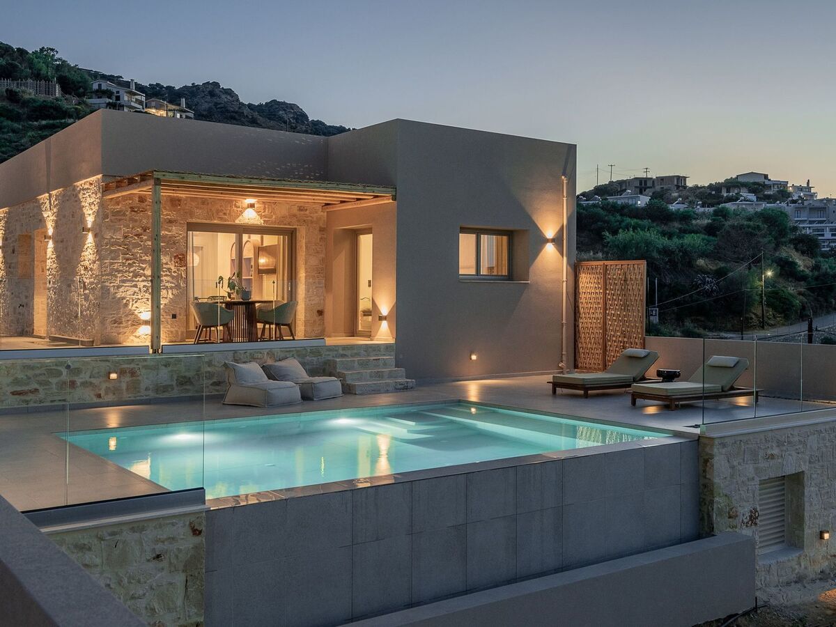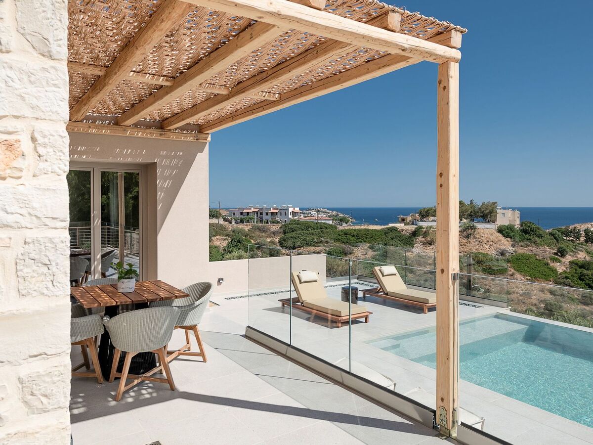 The villa is characterized by high aesthetics and stunning panoramic views of the Cretan Sea.