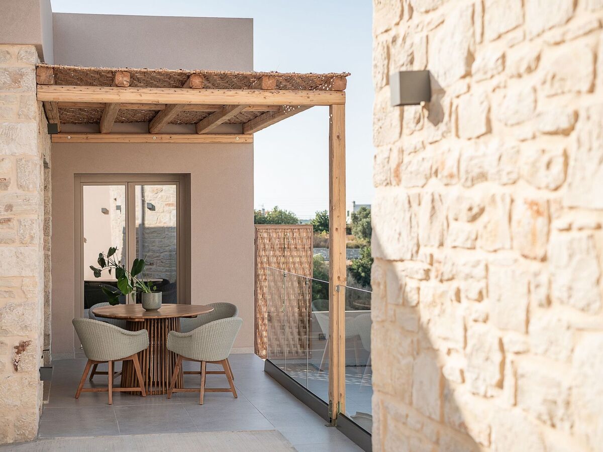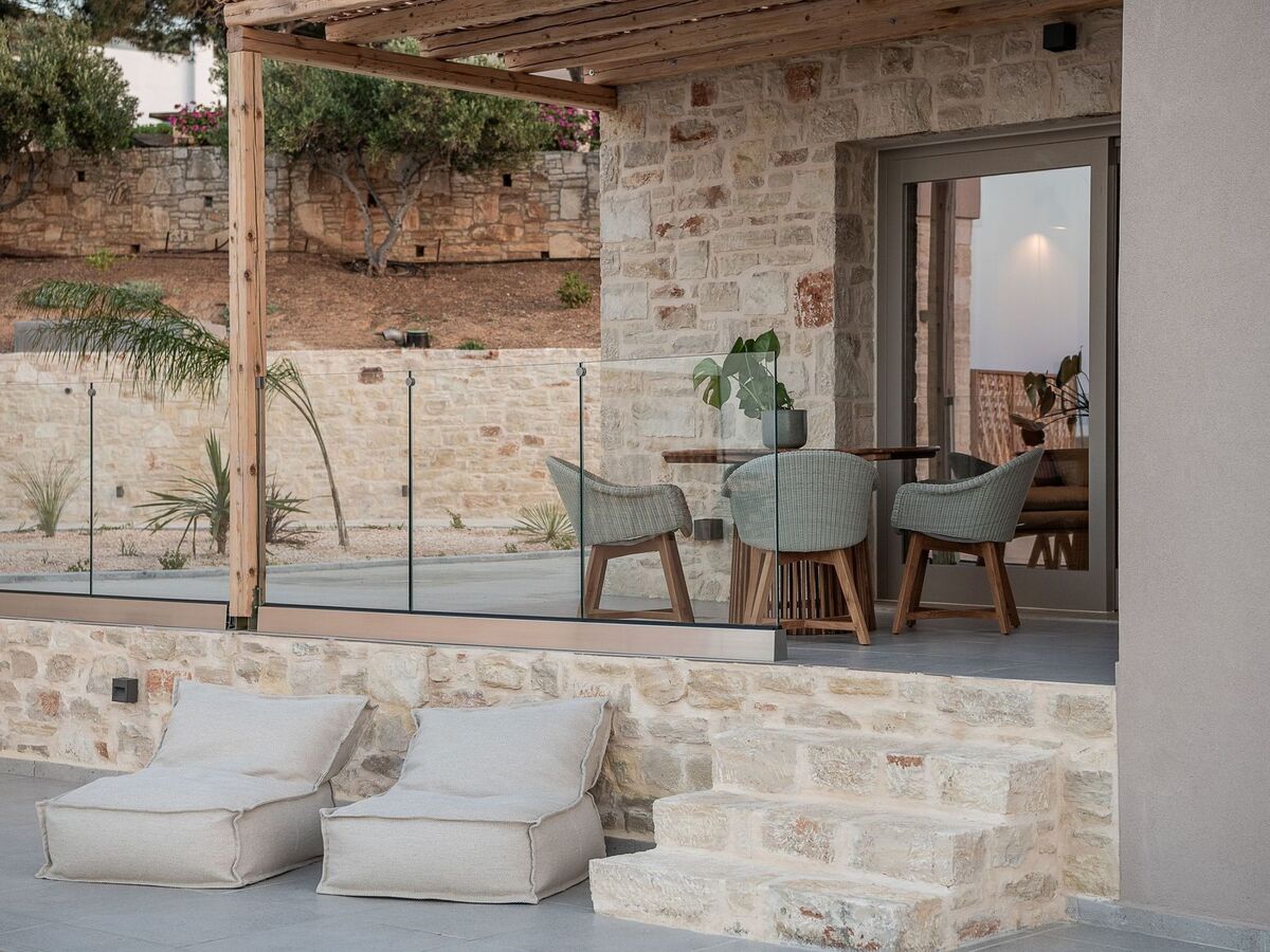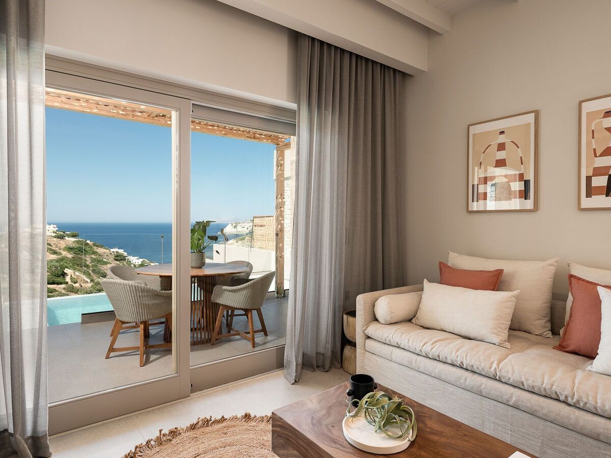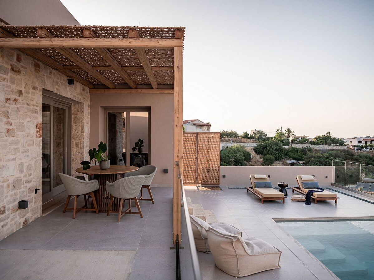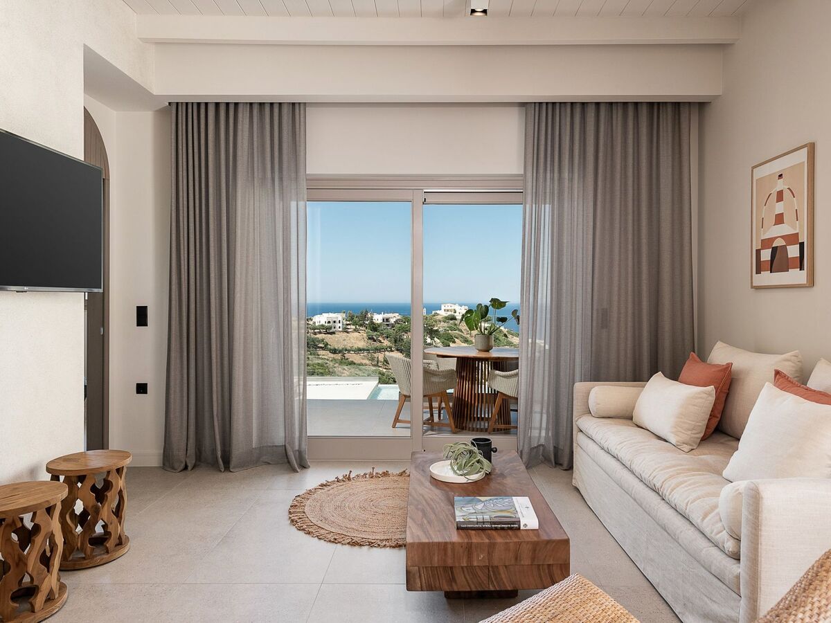 The villa is characterized by high aesthetics and stunning panoramic views of the Cretan Sea.