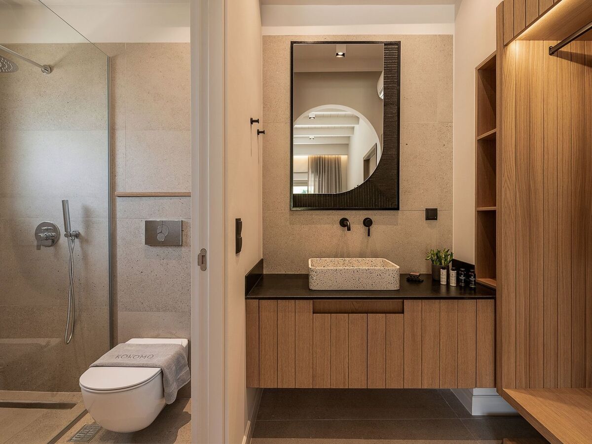 Villa Aura hosts 2 bedrooms, both with king-size beds and ensuite bathrooms with showers.