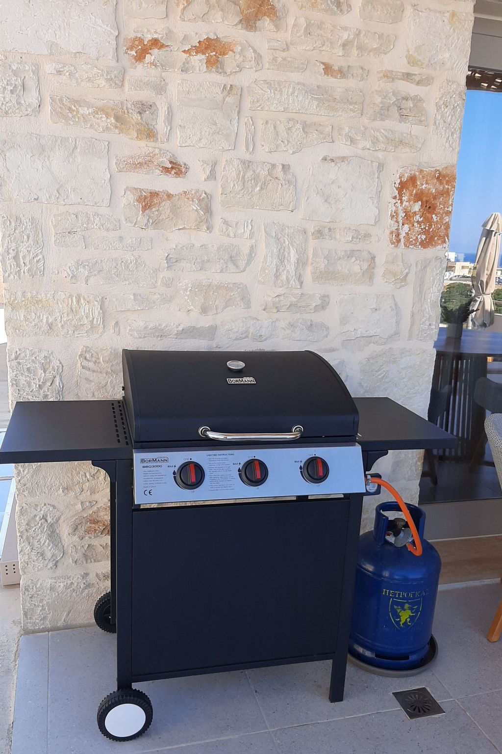 Exterior Area:-First of all, all the exterior areas of the property are private and also provide full privacy - 24m2 swimming pool and depth 1.40- Fully equipped portable barbecue area with gas- outdoor dining tables under shadows with views to the sea and the surrounding landscape- Different places to relax under a shade or under the sun along with sun beds, umbrellas, dining tables or exterior sofas- Parking spaces