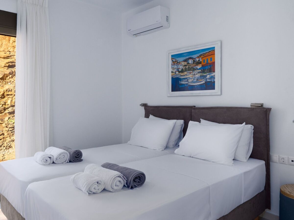 Situated on the bay of Aghia Pelagia, enjoys excellent views of the deep blue of the Aegean Sea.