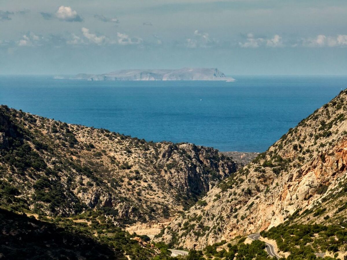 The location offers a panoramic view from Vrachasi village extends to the Cretan sea and offers a unique landscape that combines nature within a traditional settlement.