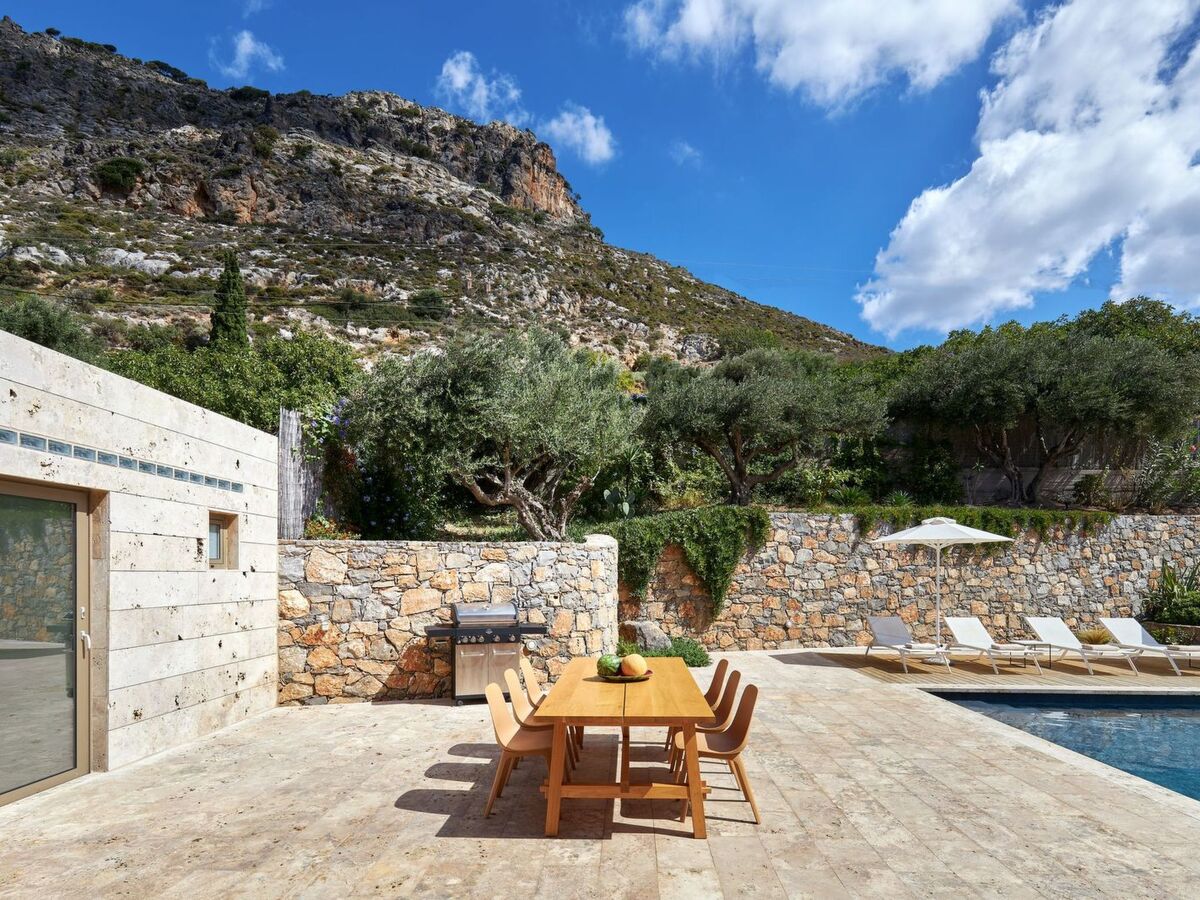 The architecture of the Villa is harmonically combined with that of the traditional village of Vrachasi, as stone is beautifully combined with modern touches.