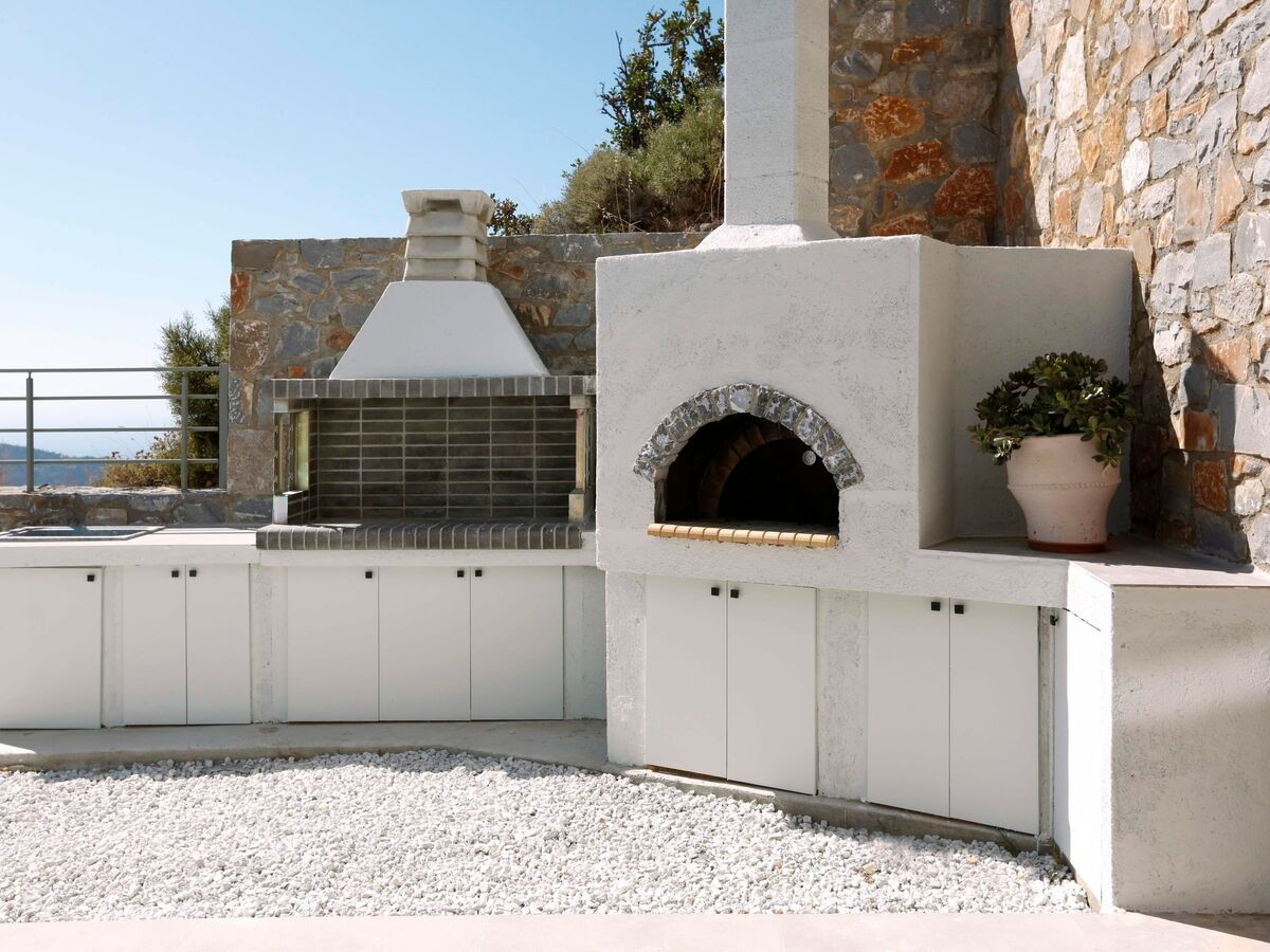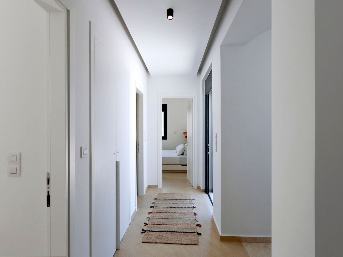 The exterior is well blended with the green olive groves that surround the estate and the absolute-blue color of the salt-water swimming pool offer an unparallel aesthesis of tranquility.