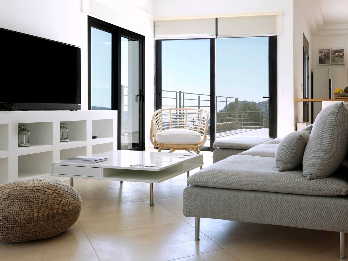 The architecture of the Villa is harmonically combined with that of the traditional village of Vrachasi, as stone is beautifully combined with modern touches.