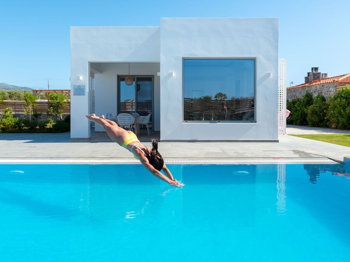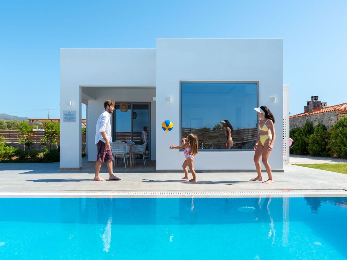 All our villas include a private garden with a swimming pool, parking space, and free WiFi connection.