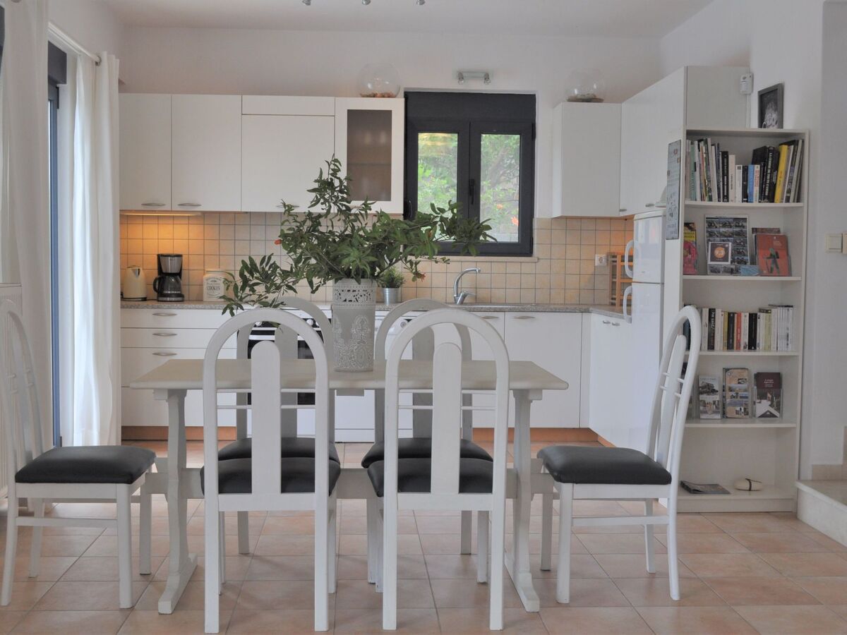 Le rez-de-chaussée, d'une superficie d'environ 70 m², comprend un salon avec une cheminée, une télévision à écran plat, un canapé triple et un canapé double, une cuisine entièrement équipée avec un four, un micro-ondes, une machine à café (filtre et Nespresso) et une salle à manger pour 6 personnes.L'étage supérieur offre 2 chambres, toutes deux équipées d'un lit double, d'un très grand placard, d'une coiffeuse avec miroir et d'un grand balcon.Les balcons sont l'endroit idéal pour siroter un thé l'après-midi (ou un cocktail si vous en avez envie) et admirer la vue étincelante sur la mer - en fait, c'est le meilleur endroit de la maison pour les couchers de soleil au bord de l'océan.La salle de bains principale avec bain-douche, toilettes et lavabo est également située à l'étage supérieur.