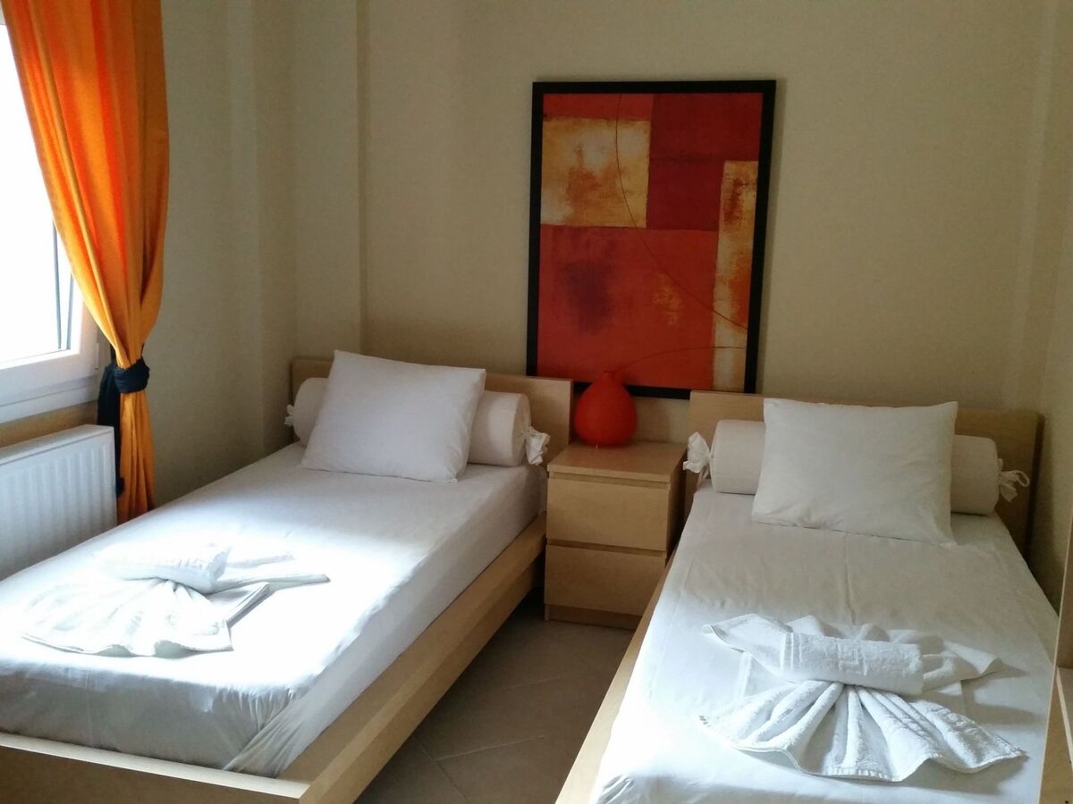 The ground floor also hosts two bedrooms of 15 square meters each, one has one double bed and the other has two single beds.