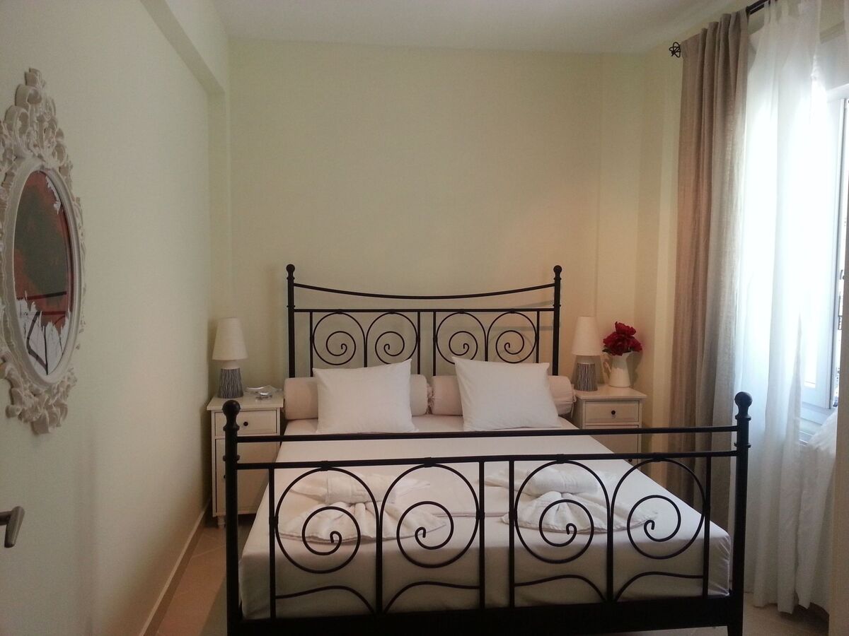 The first floor has one master bedroom of 40 square meters with a living room and a fire place and two bedrooms of 15 square meters each: one has one double bed and the other two single beds.