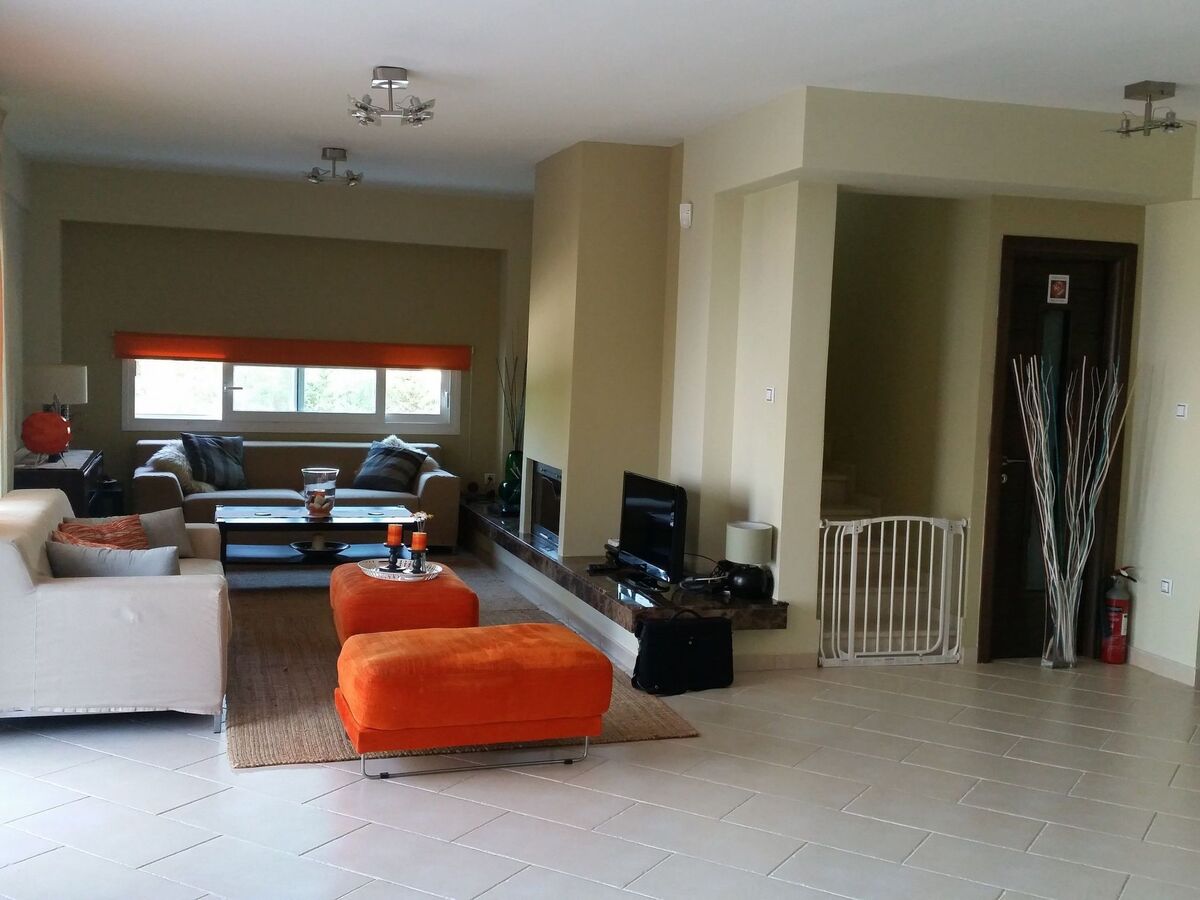 There are 4000 sqm with well maintained lawns, palm trees, pine trees, olive trees and a fully equipped large barbeque kiosk.