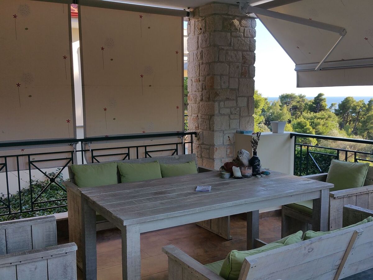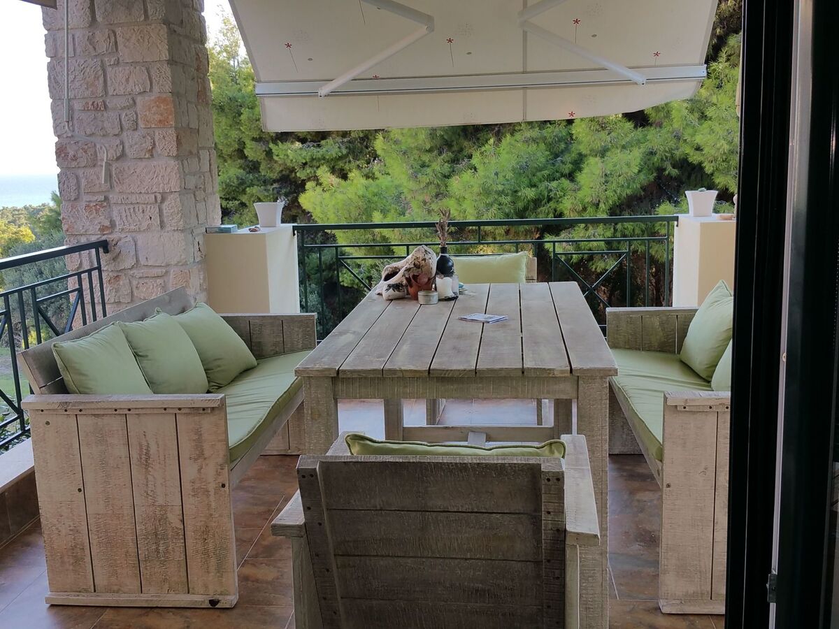 The large balcony gives the house a special touch, as here you can enjoy the view of the forest all the way to the sea while smelling the conifers.