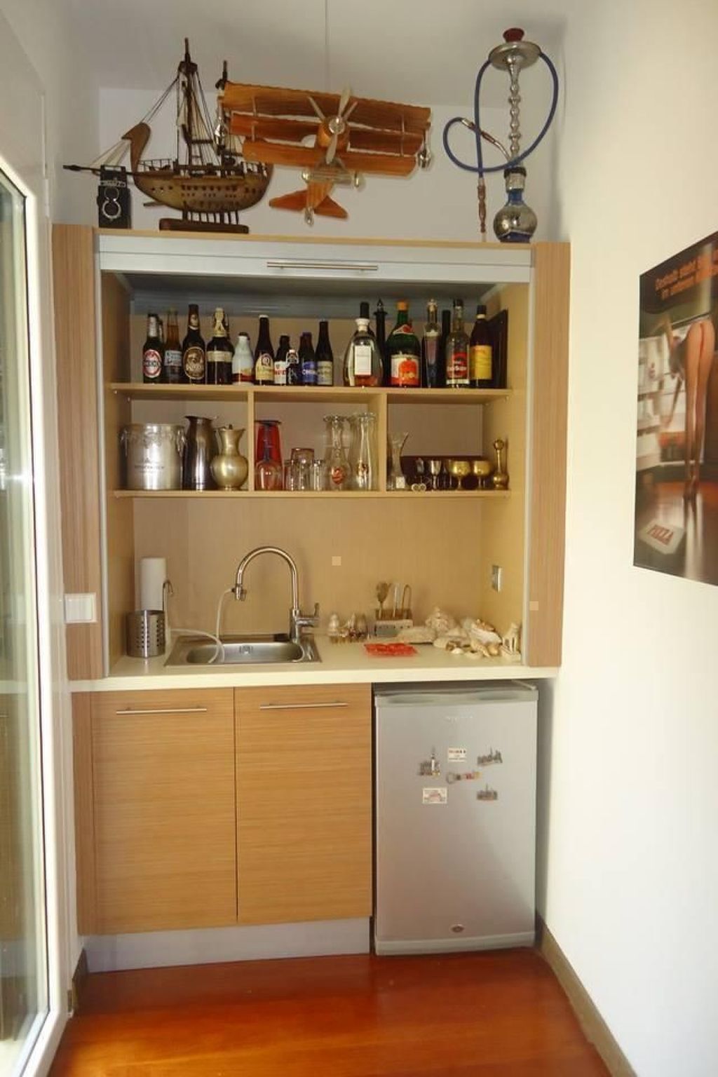 There is a small minibar with fridge in the hallway where you can store your drinks.
