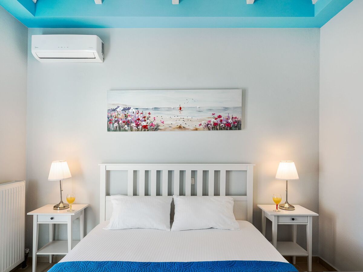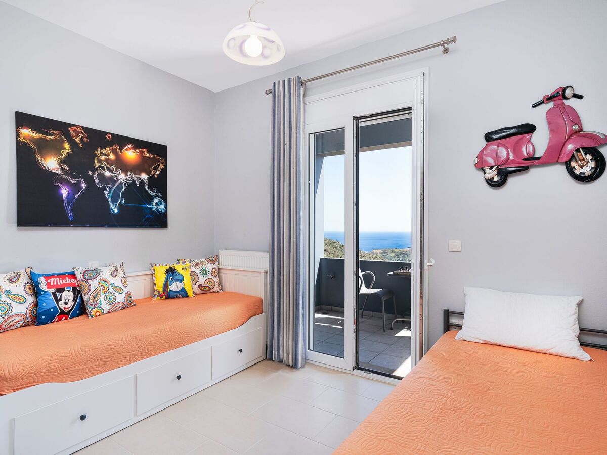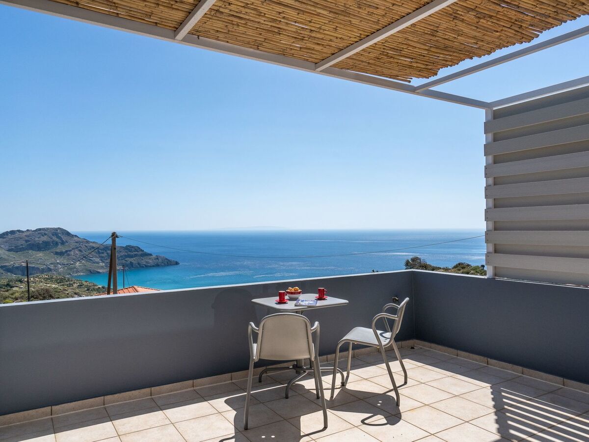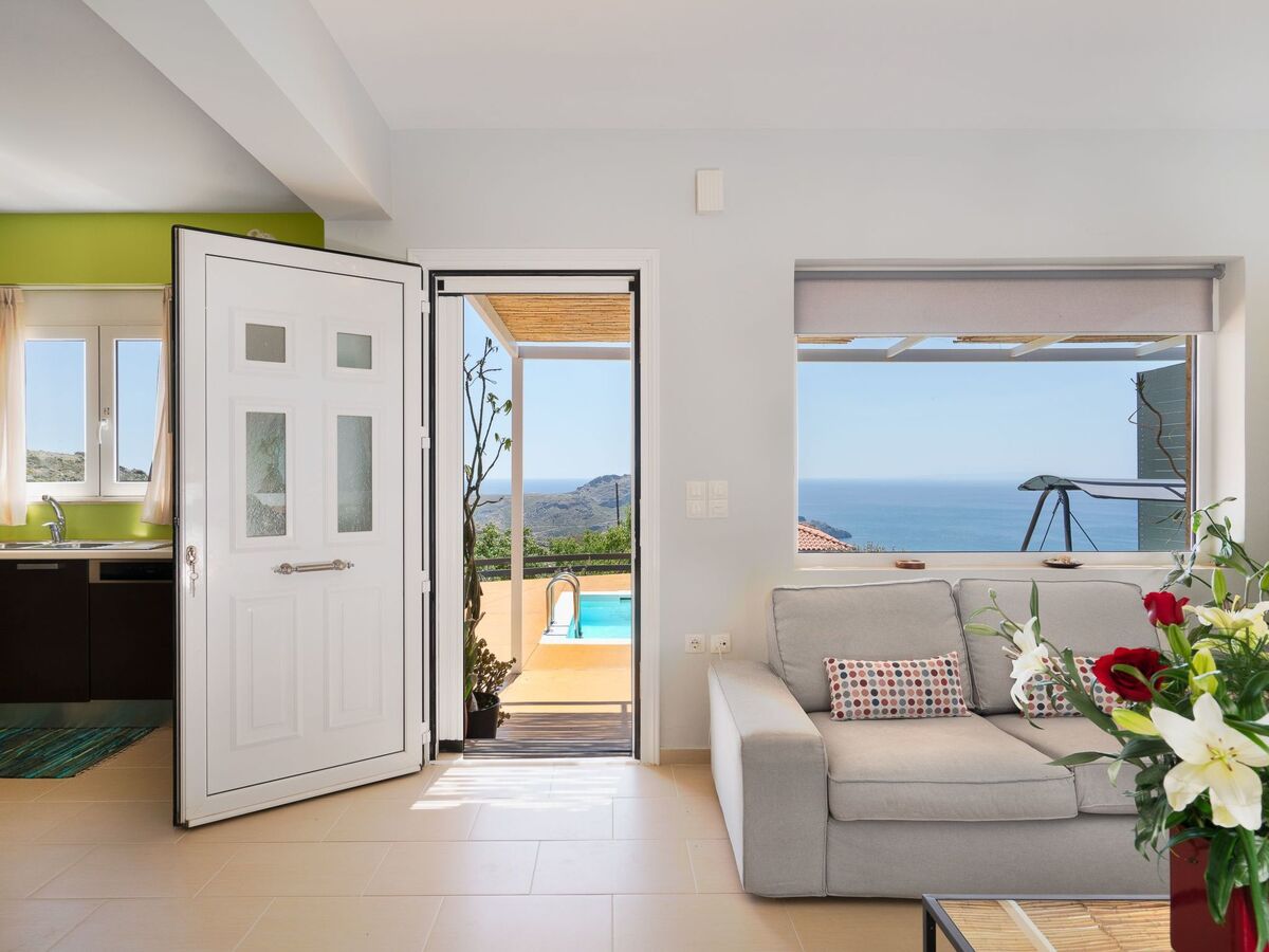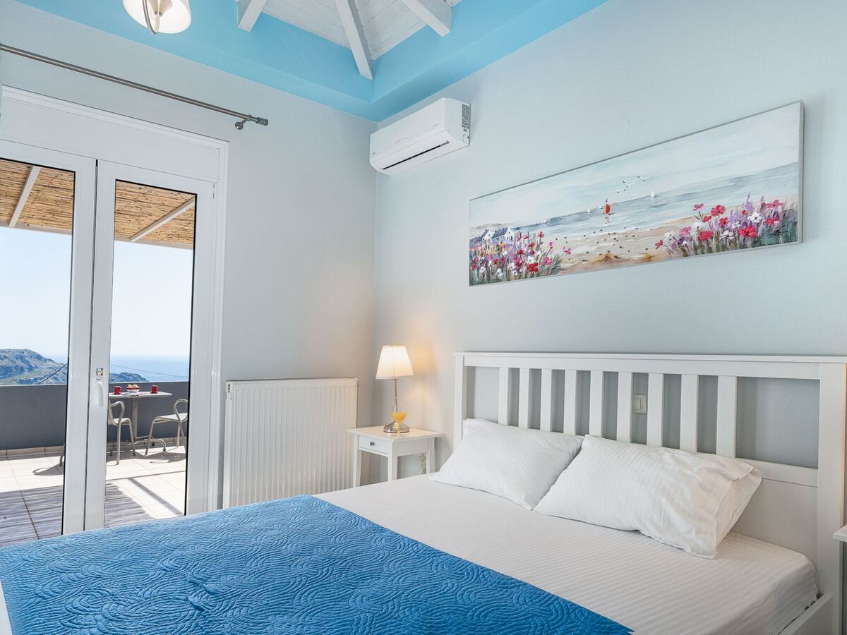 Inside, Mirthios Panorama Villa is modern, bright and open with comfortable living areas and tastefully designed bedrooms for comfort with their own balconies.
