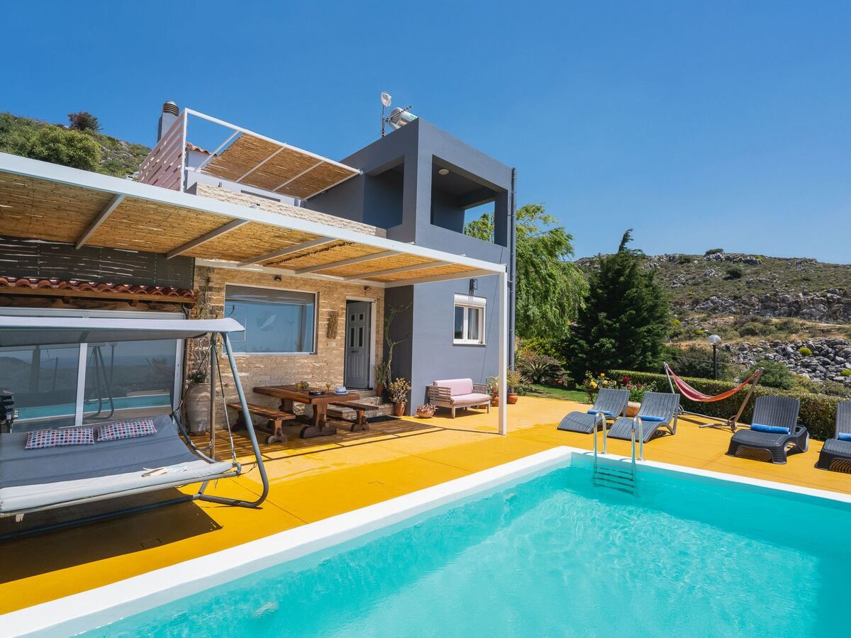 This comfortable vacation villa boasts excellent facilities and access to a garden with an outdoor swimming pool and spectacular views of the bay of Plakias.