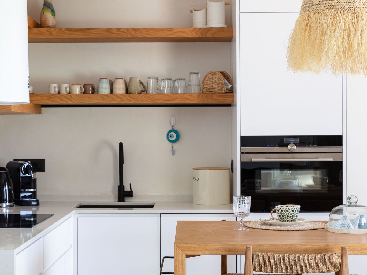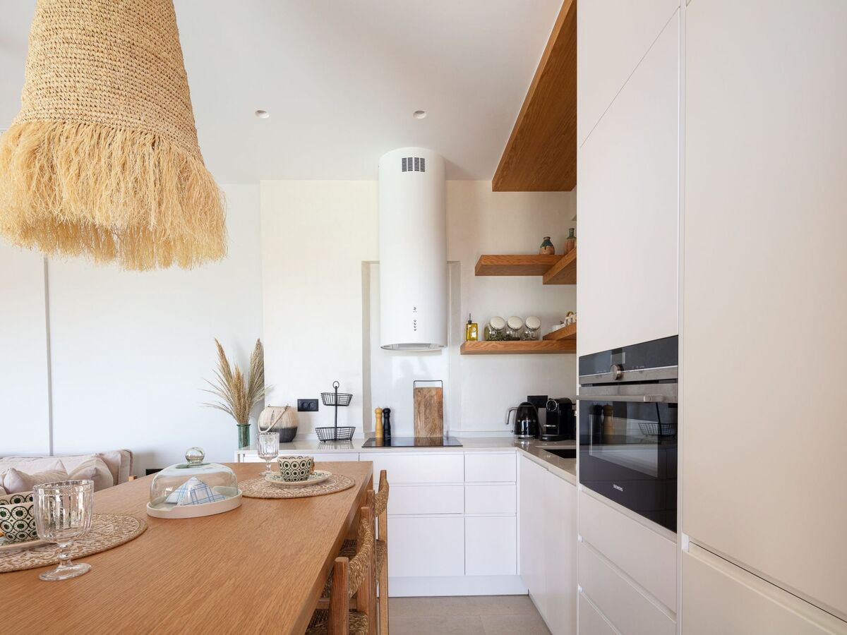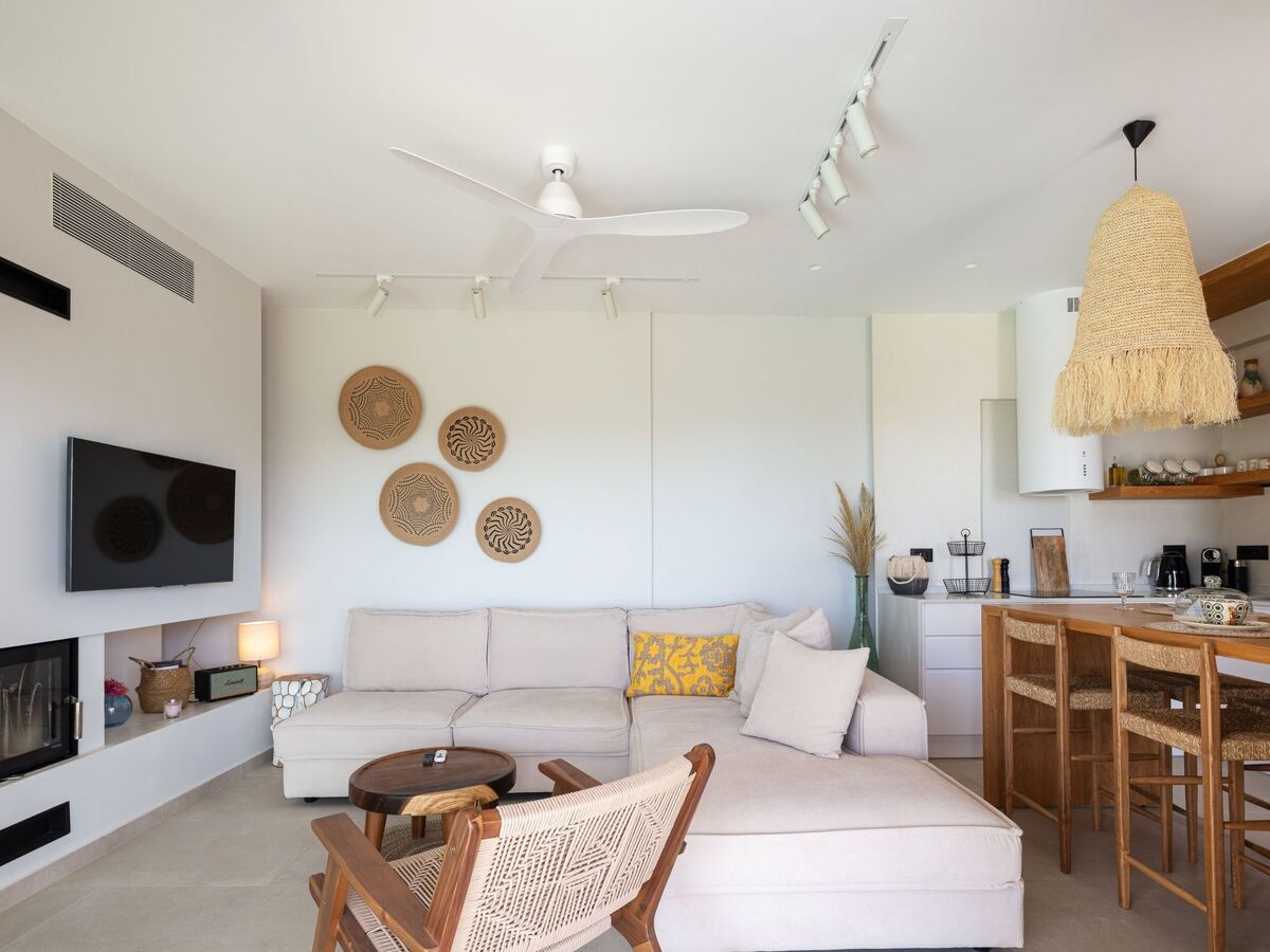 The living room seamlessly connects to the dining area and fully equipped kitchen, perfect for enjoying home-cooked meals.