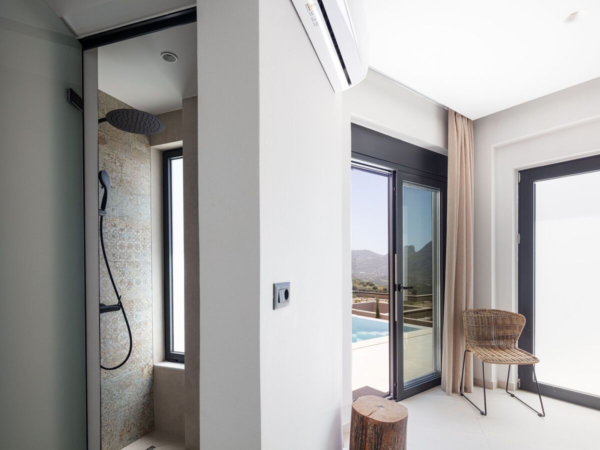 Serenity Villa features two elegant double bedrooms, each with king-sized beds, en-suite bathrooms, and access to a communal balcony where you can enjoy the view.