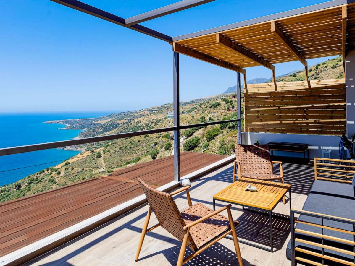 This Greek holiday villa is in the popular tourist destination of Rodakino (which translates to “Peach”), in South Crete.