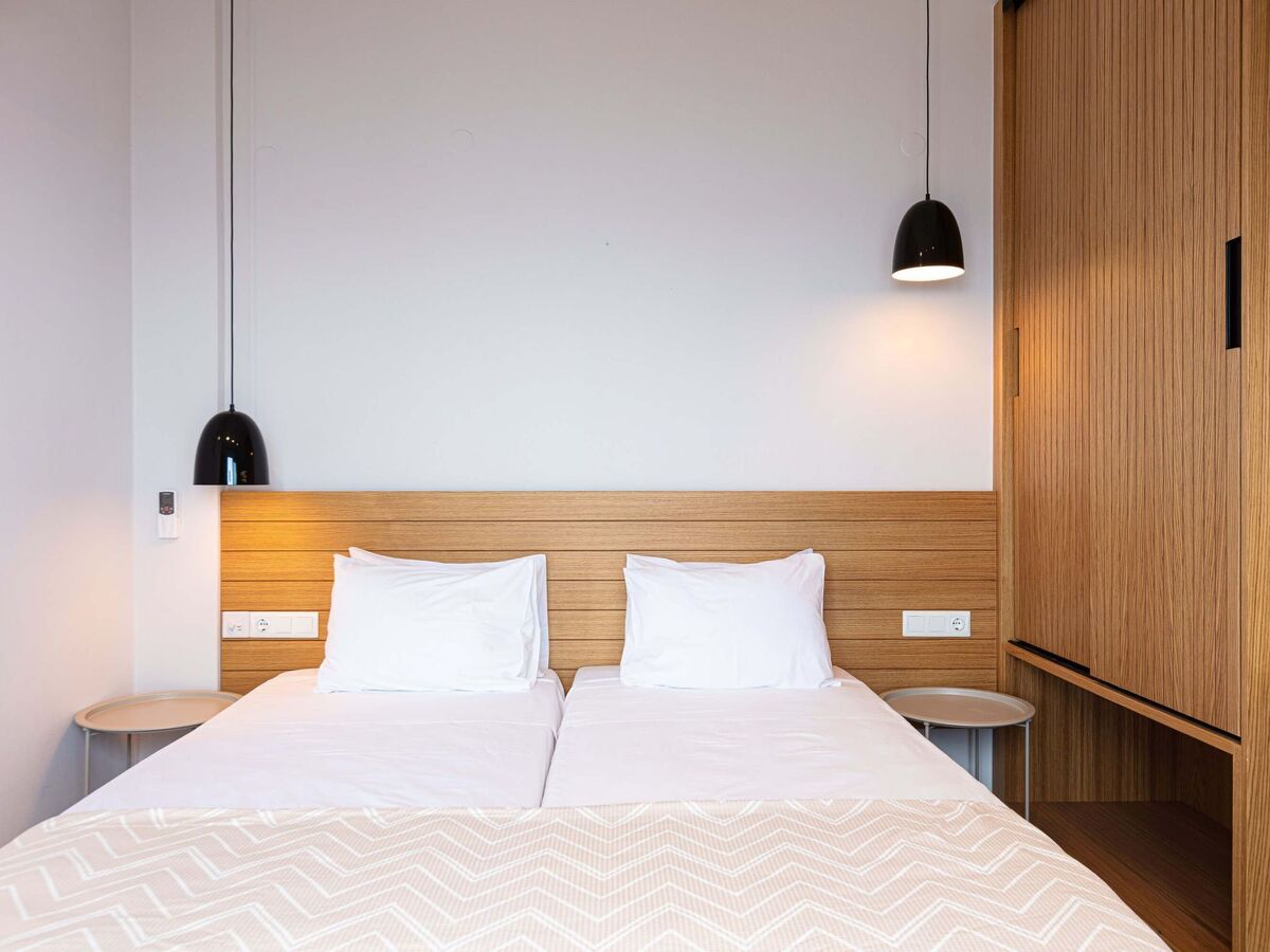 The other two bedrooms are on the top floor and have two combined twin beds in each, with glass doors and a spacious balcony providing magnificent sea views.