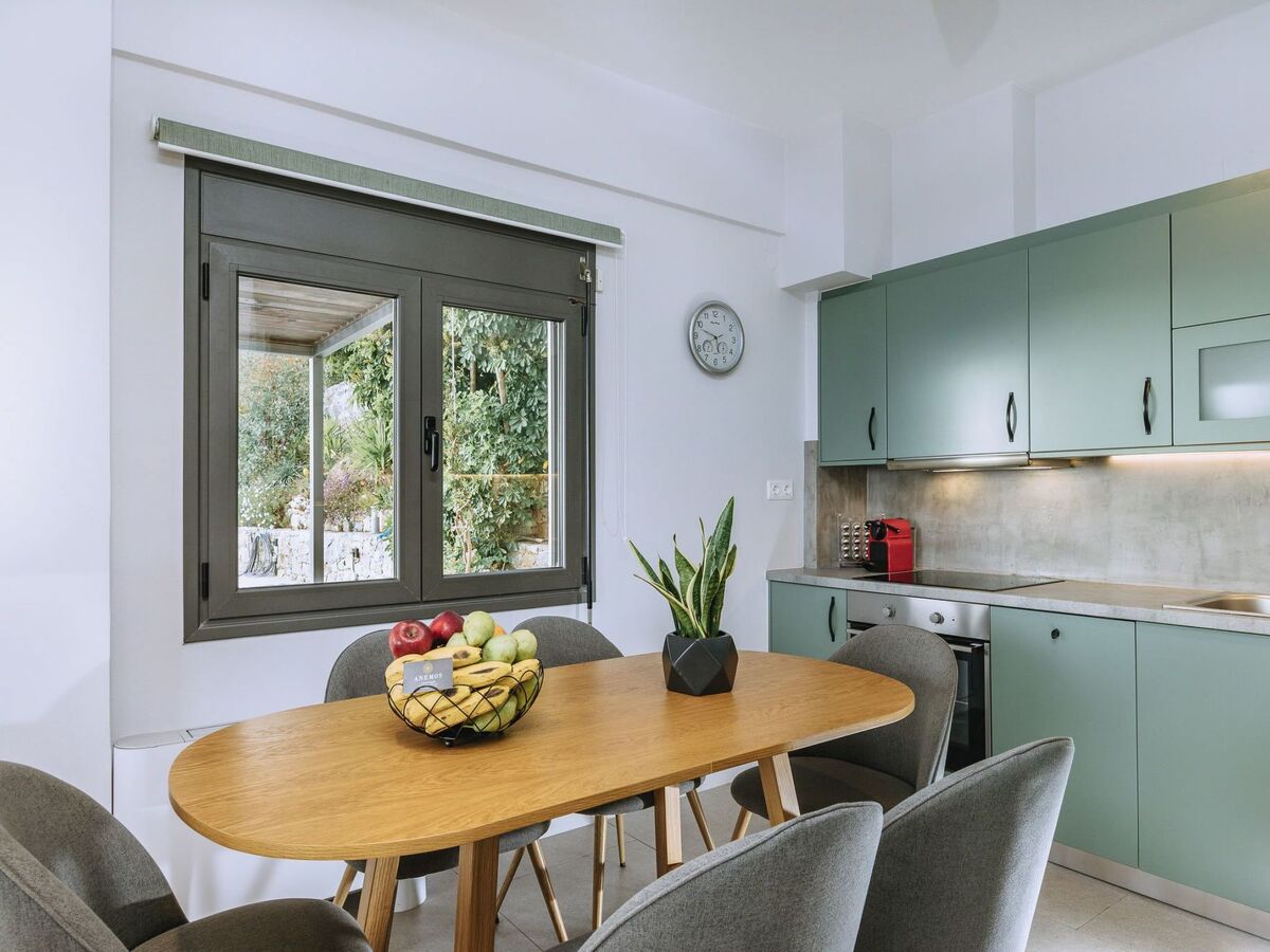 The Stephanos luxury holiday villa offers a welcome pack of fresh fruit, wine, and coffee capsules for guests to enjoy.
