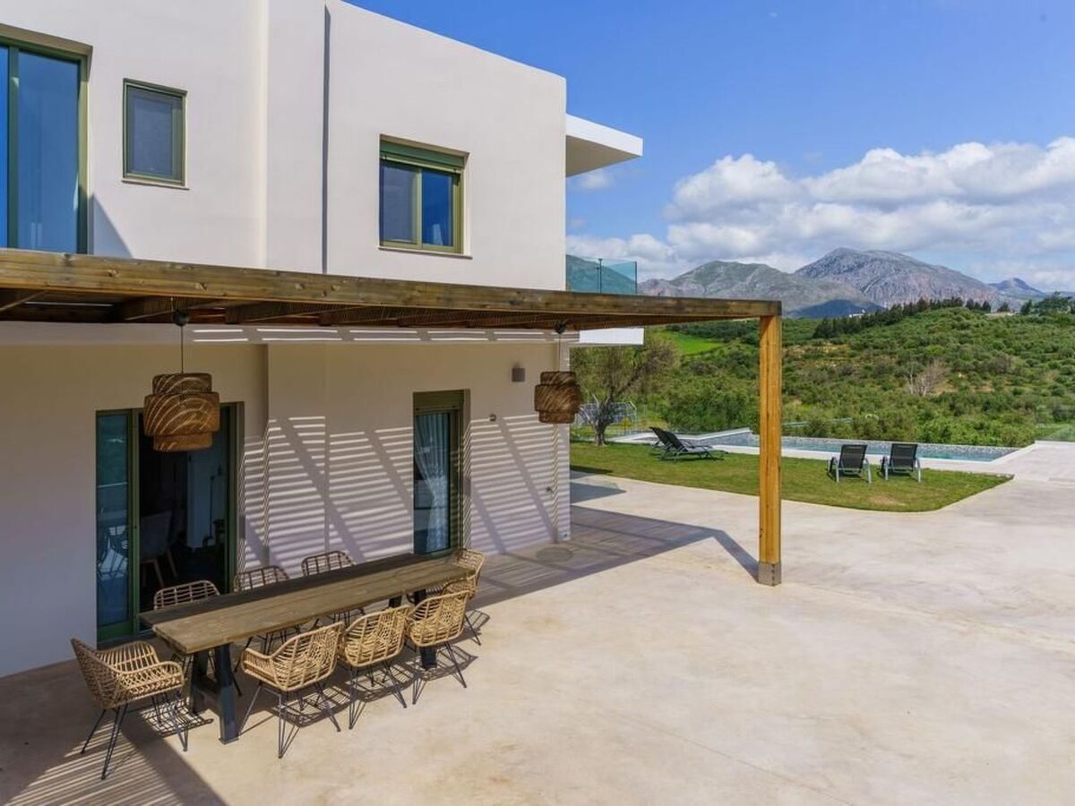 A Brand New Villa Close to the beast Beches of Crete at the rea of Damnoni.Medern villa with a touch of island architecture in an area of 200 square meters where you can enjoy the long swimming pool you barebeque and if you want to invite your friends and guests to do your own event, party, wedding, anniversary at the huge outside garden area of the house .