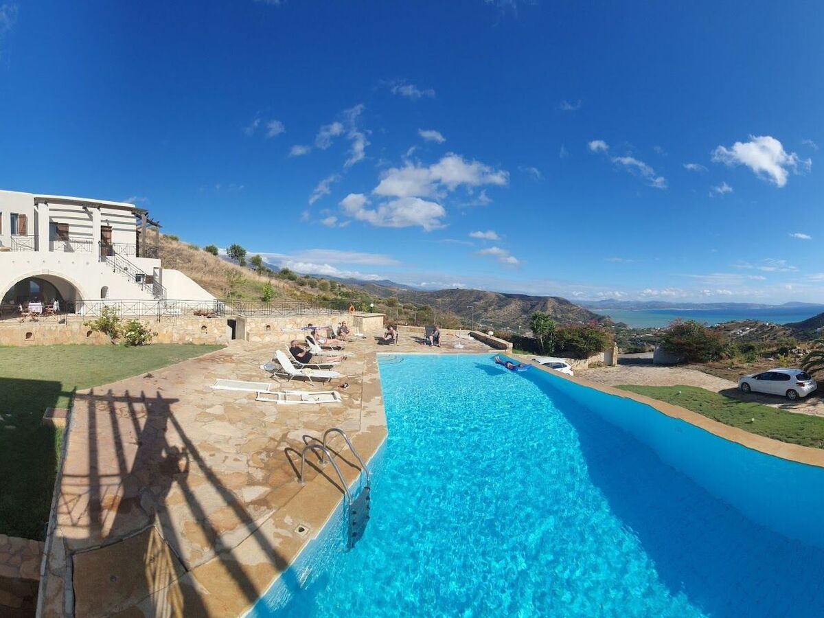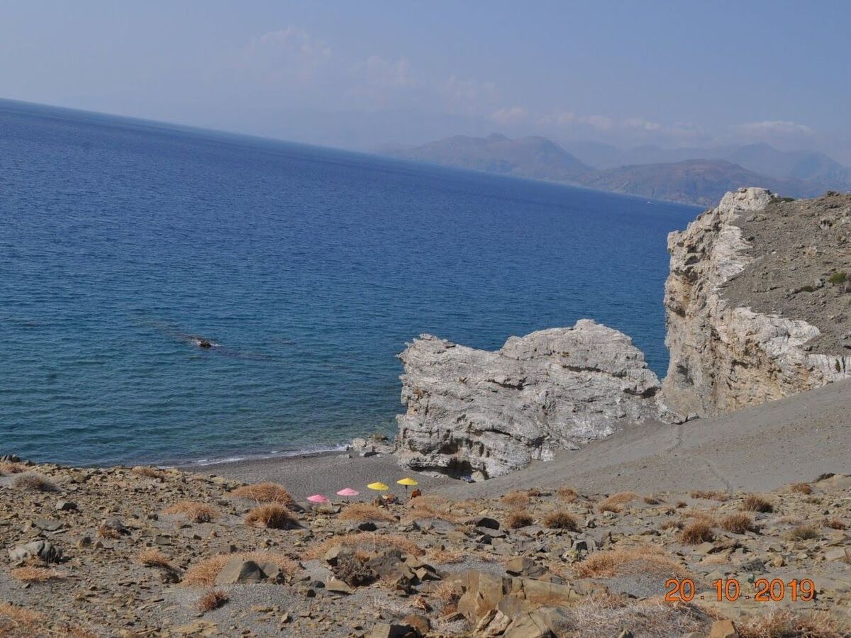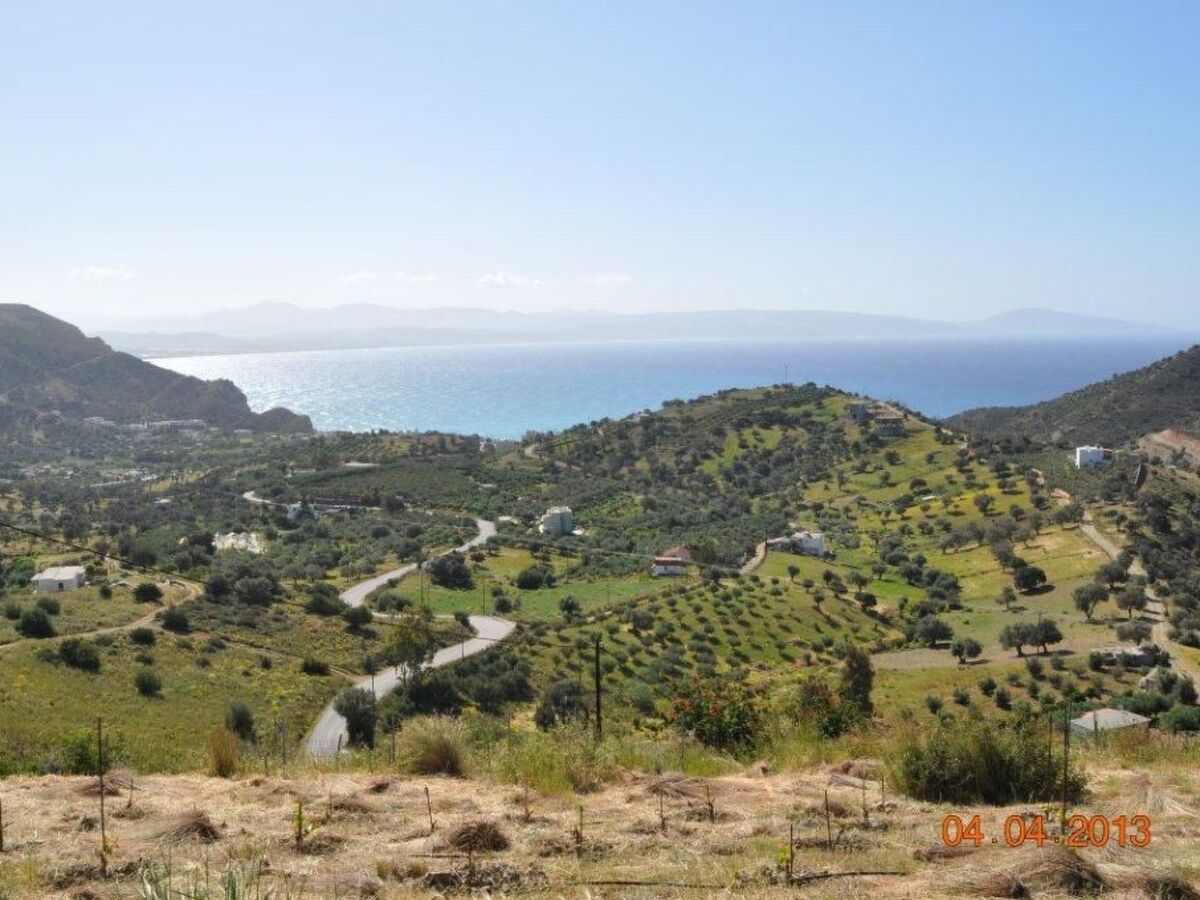 We can see the islands of Paximadi, the villages of Agia Galini and Matala and the surrounding hills of very old olive trees.