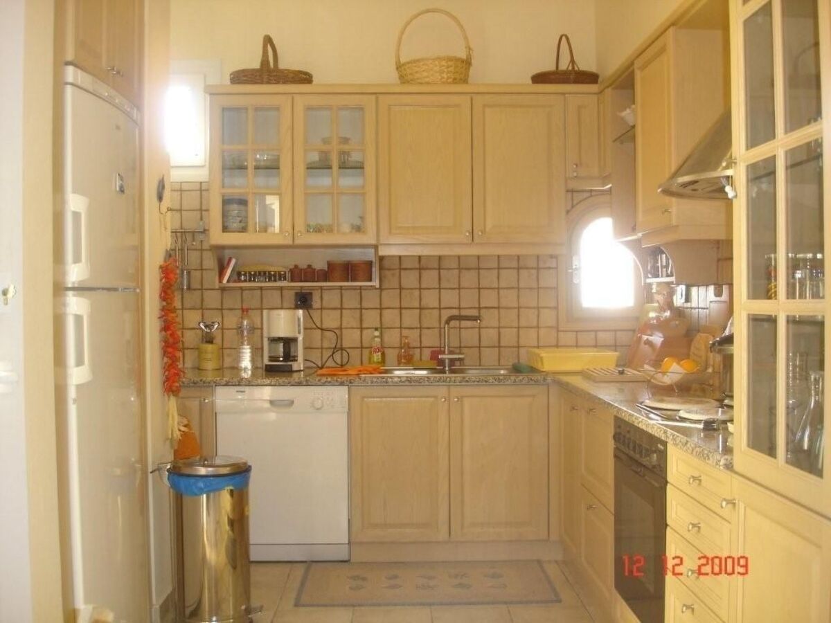 At our right side there is the dining room adjoining a fully equipped kitchen and a WC.