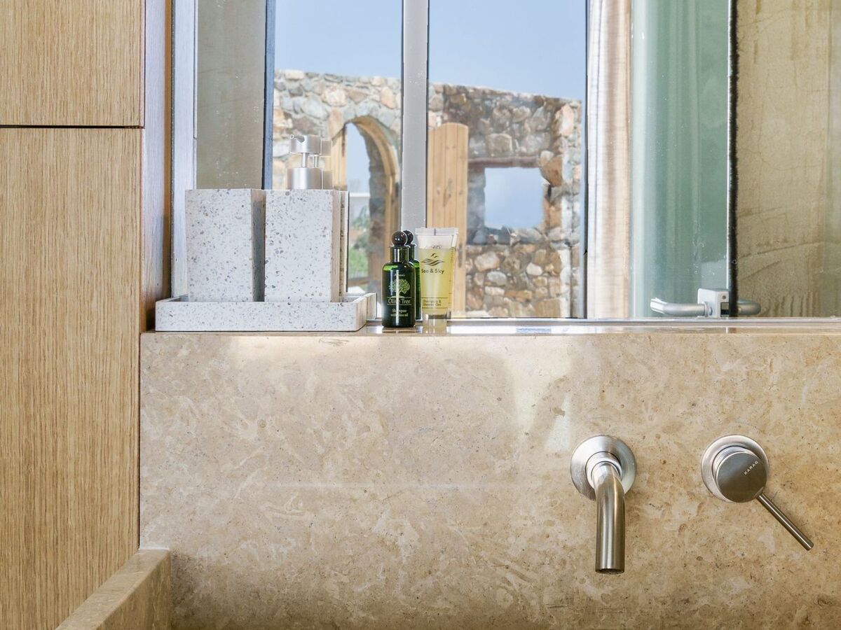 La mer à proximité est rocheuse, mais à seulement 12 km se trouve l'une des plages crétoises les plus célèbres, Elafonissi, avec ses eaux cristallines et son sable corallien.