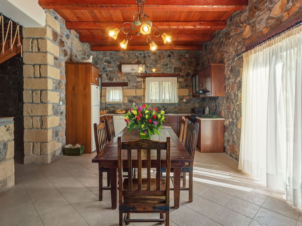 La mer à proximité est rocheuse, mais à seulement 12 km se trouve l'une des plages crétoises les plus célèbres, Elafonissi, avec ses eaux cristallines et son sable corallien.