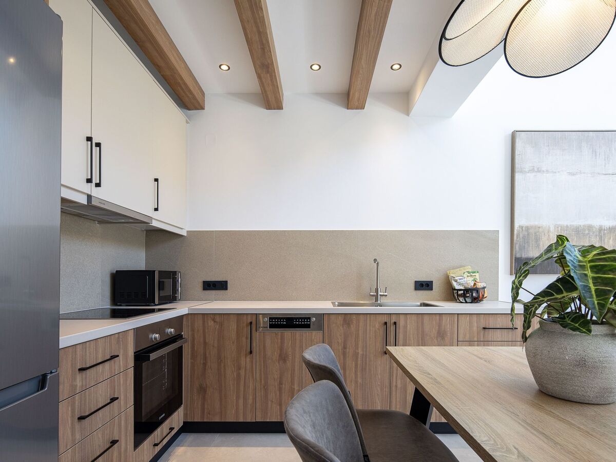 Large sliding doors provide access to private terraces or the pool area, creating an easy flow between the indoor and outdoor spaces.