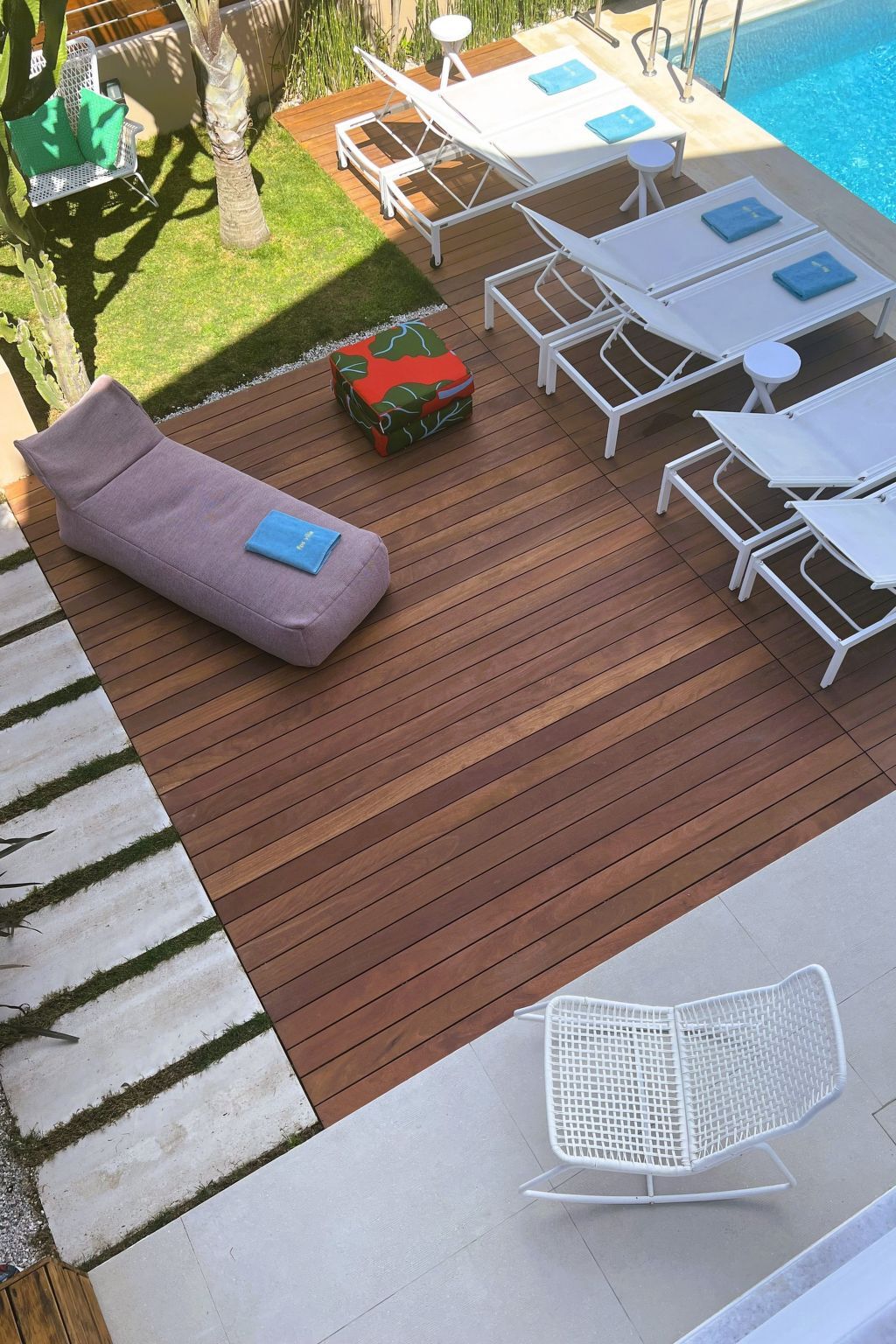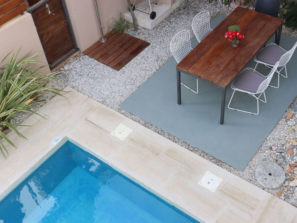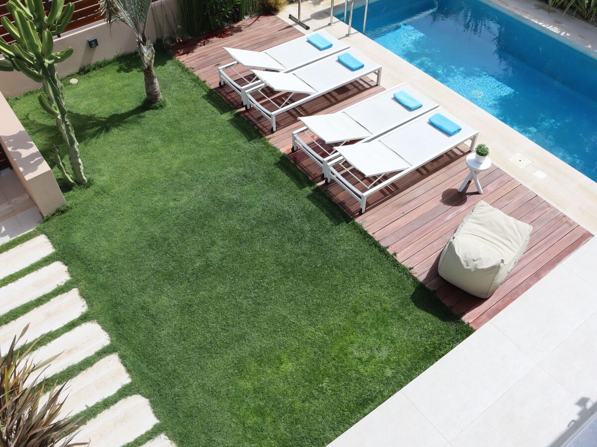 L'espace extérieur comprend également un espace libre de 150m2 et un jardin avec une piscine de 30m2.