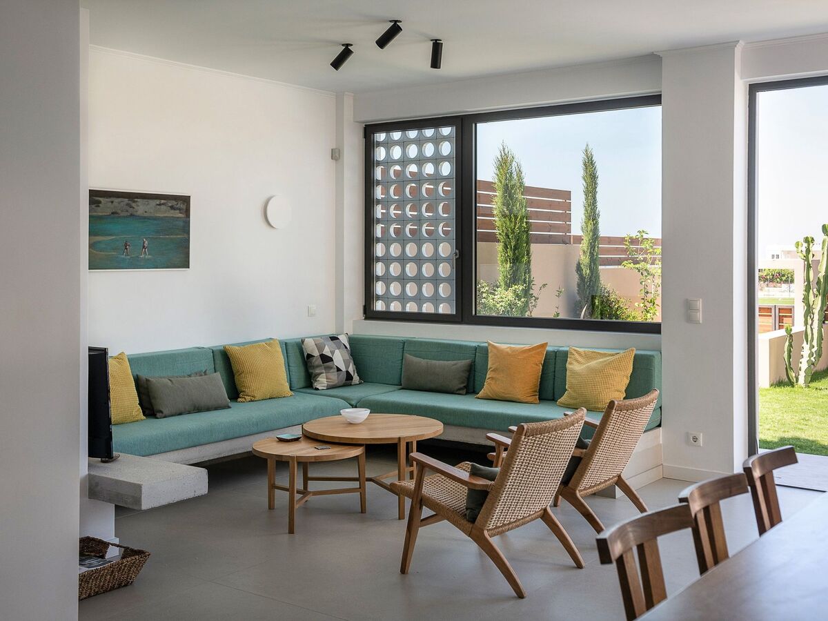 La villa a été conçue et décorée par la propriétaire et architecte Christini Polatou.