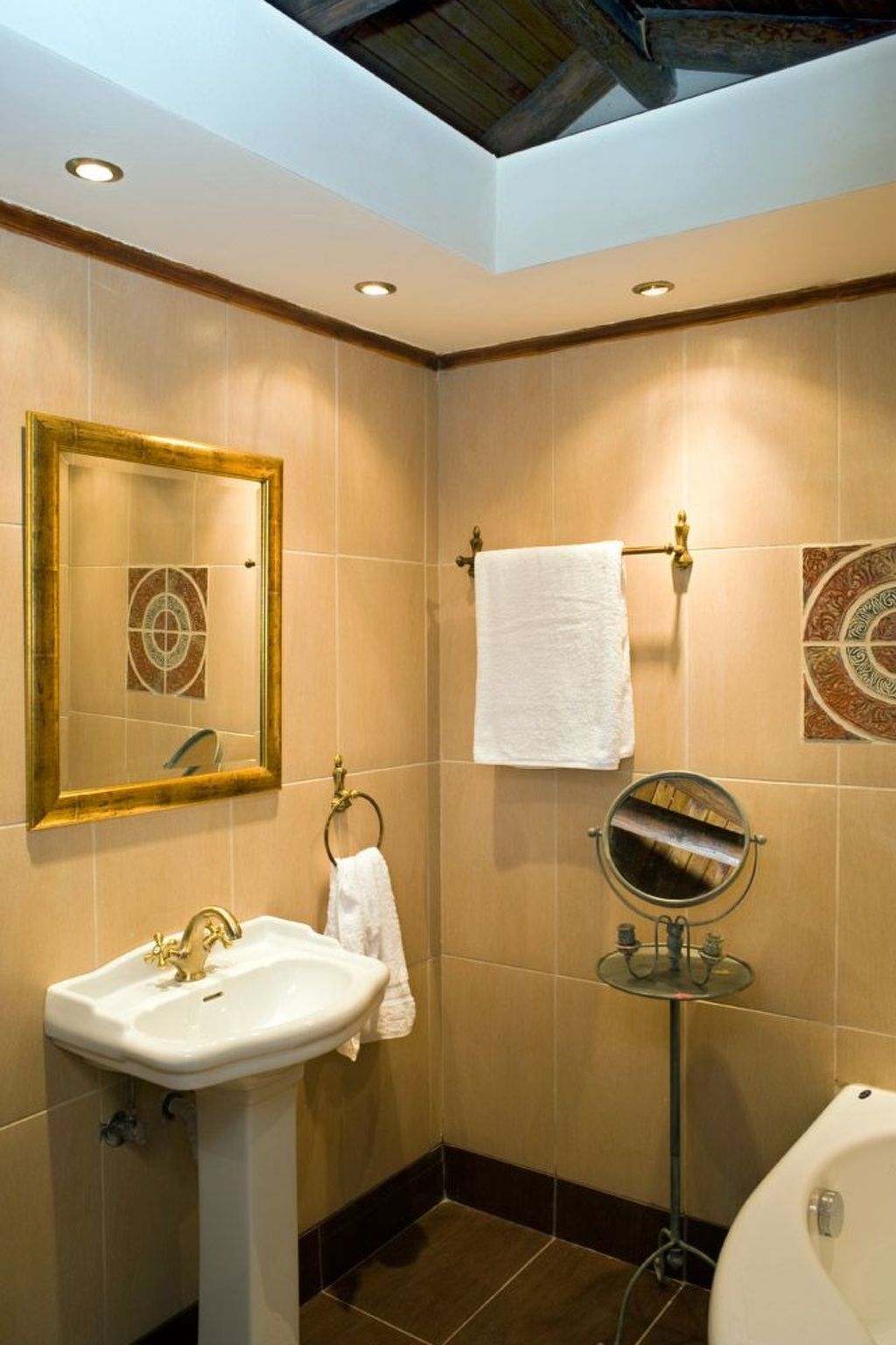 The large bathroom between the two bedrooms on this floor has a shower cabin, wash basin and toilet.