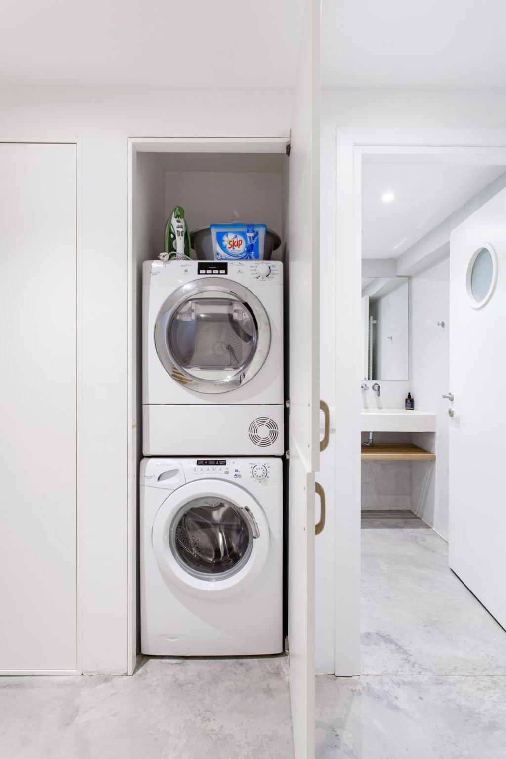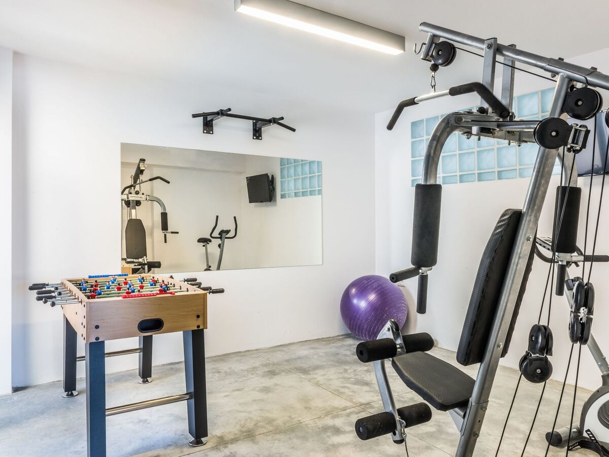 In the basement of the villa there is a well equipped gym room, a bathroom, a laundry room and a two - space indoor car park.