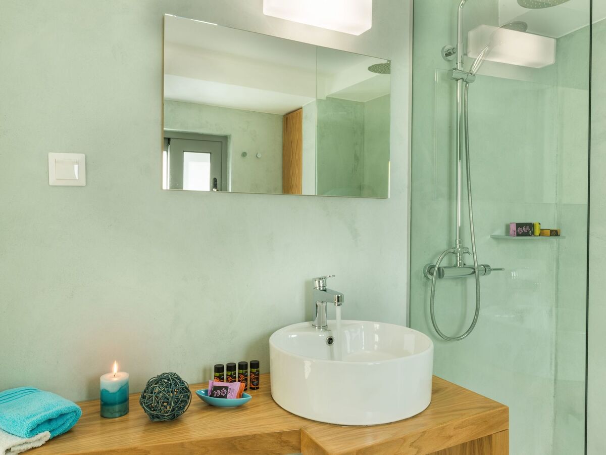 From the balcony and the outdoor pool (35 m2) you will enjoy the amazing view to the Aegean sea.