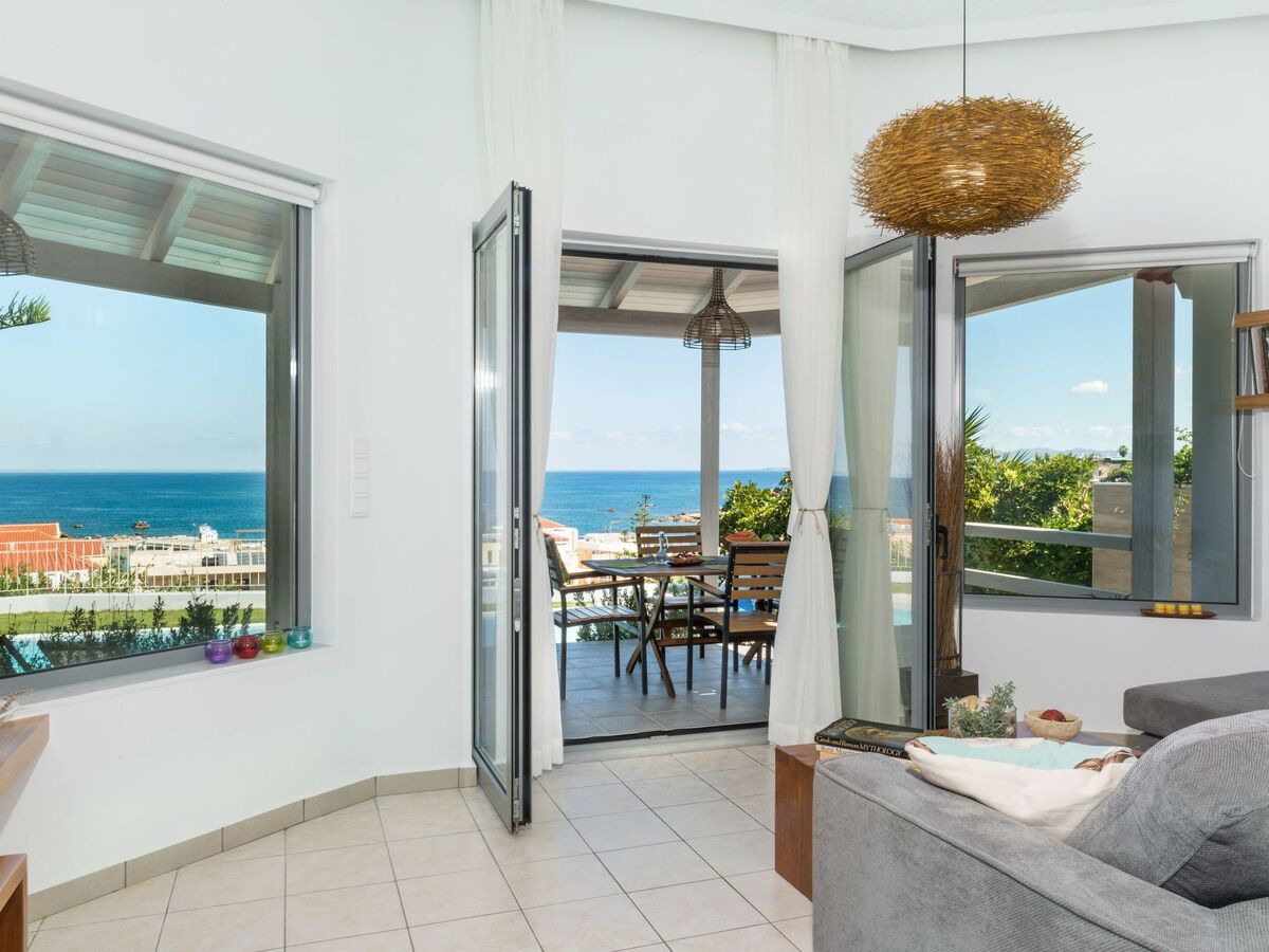 The house is built on the lower edge of the hill, right above the sea and can be reached either through the road which connects Chania and Kissamos (westbound) or the National road (marked as E65) which connects all the main cities of the northern coastline of Crete.