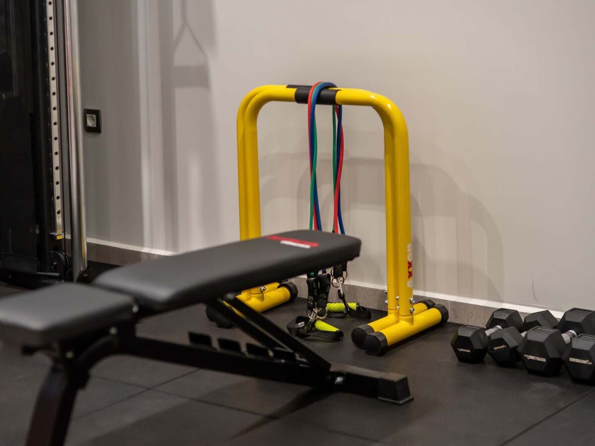 Au même étage, vous trouverez une salle de sport entièrement équipée où vous pourrez continuer à vous entraîner même pendant vos vacances, un canapé pour deux personnes et des toilettes.