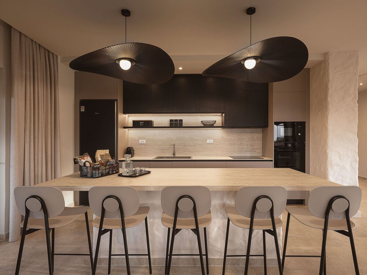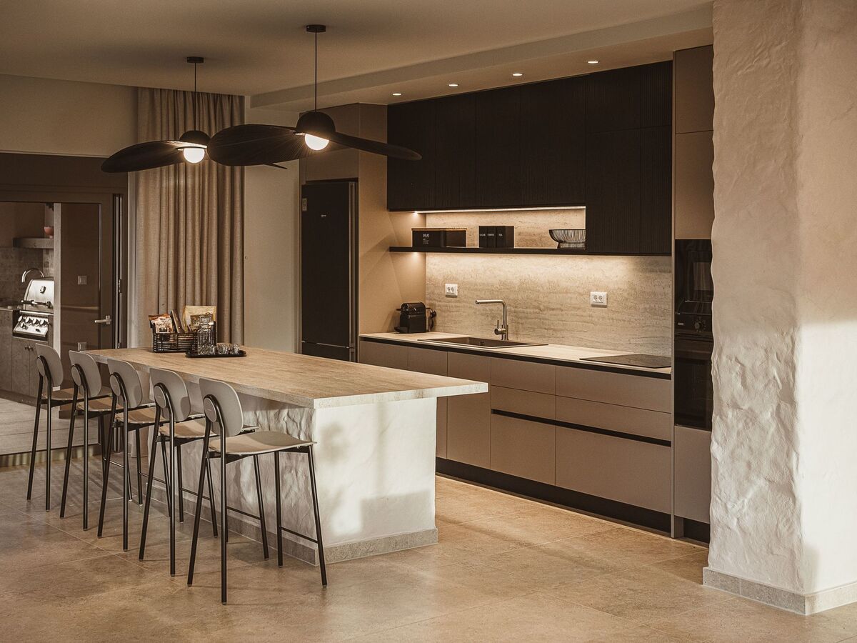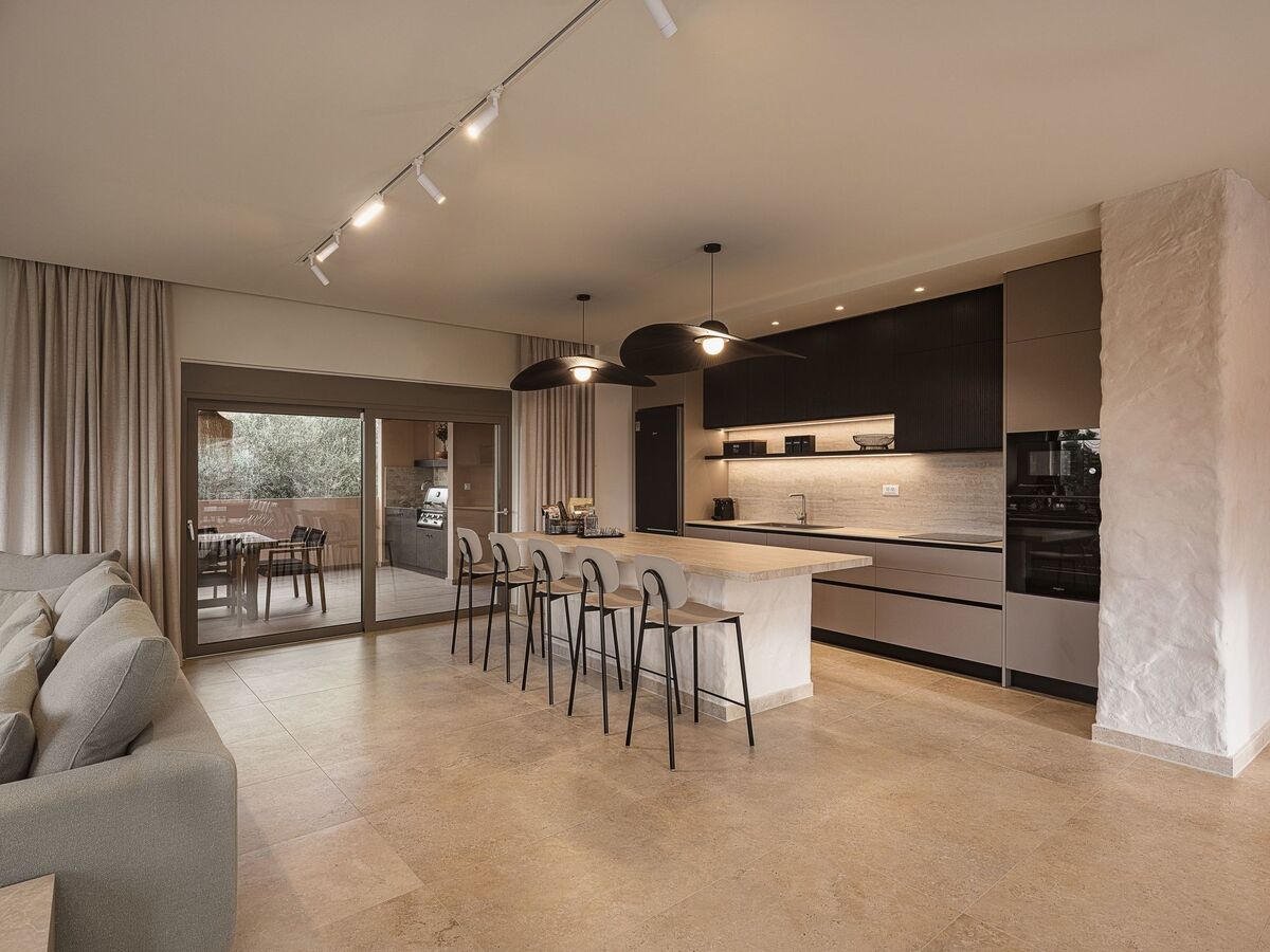Sink into the comfy sofa and enjoy a cozy night while watching your favourite series, or gather around the dining area and raise a glass of wine while you get to enjoy a good-spirited dinner! The access to the exterior area and the pool is pretty easy from the dining area, with the large window doors making a seamless transition giving you the chance to enjoy the direct connection with nature.
