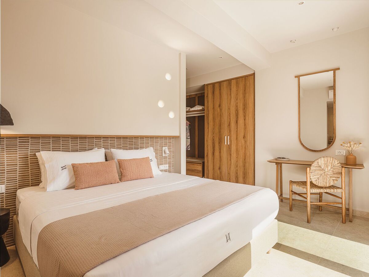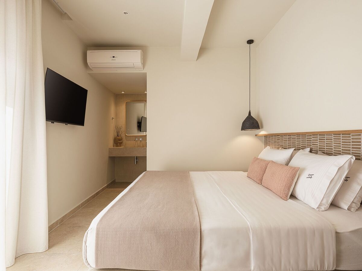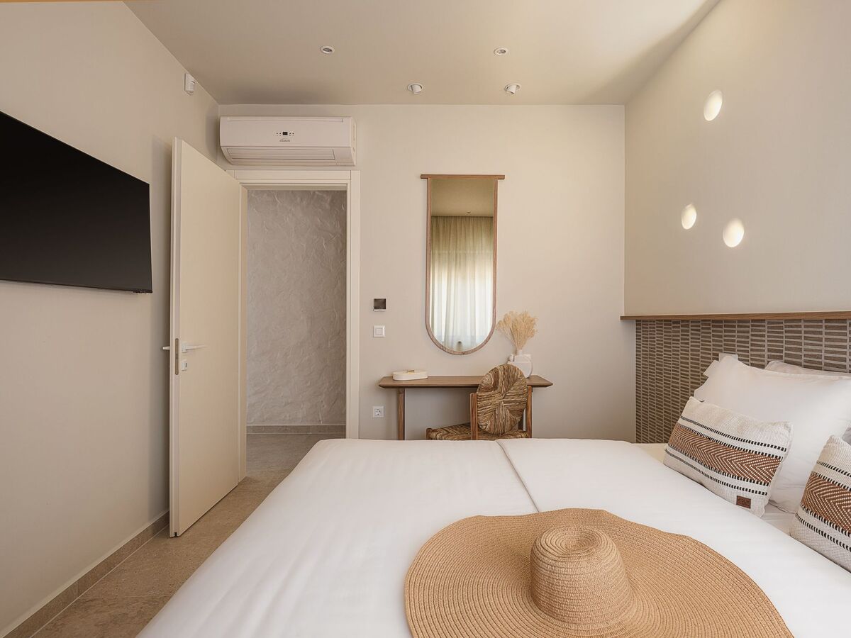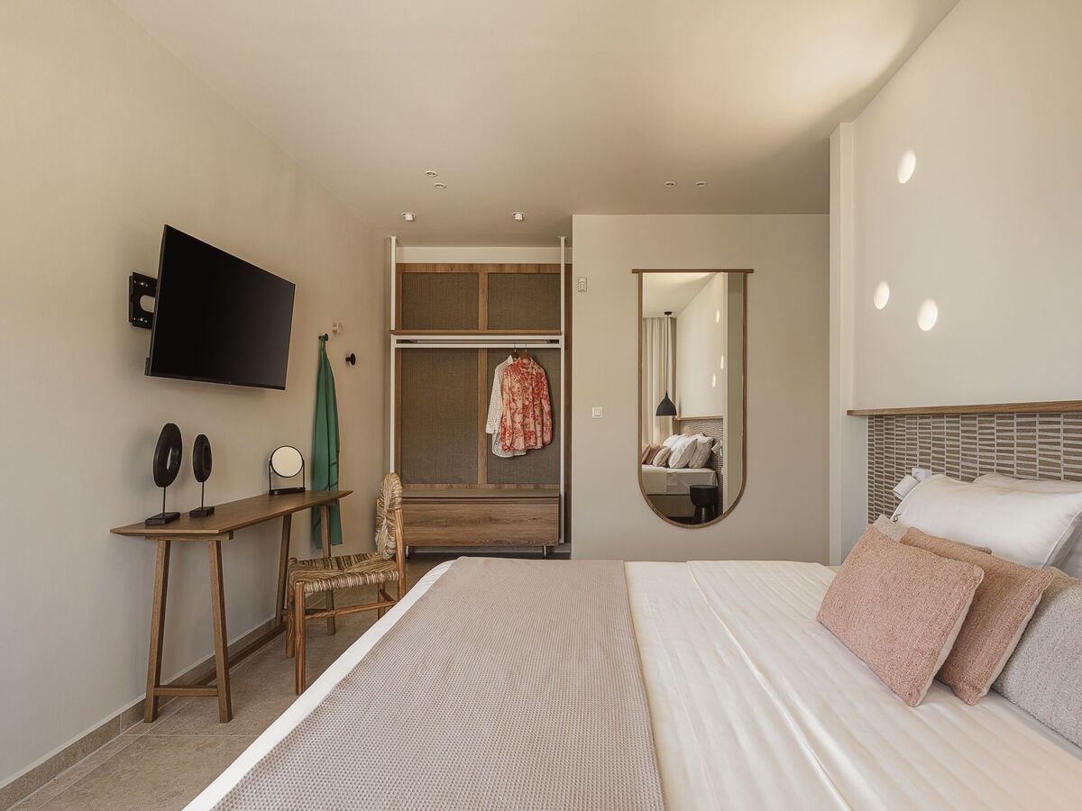 Bedroom 6: King size bed (1.80x2.00), A/C, 42’’ Smart Satellite TV, ensuite bathroom with shower, pool, and sea view
