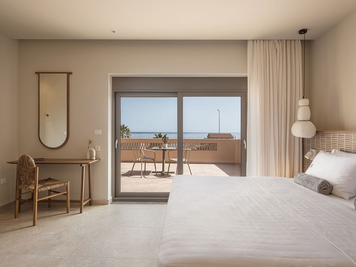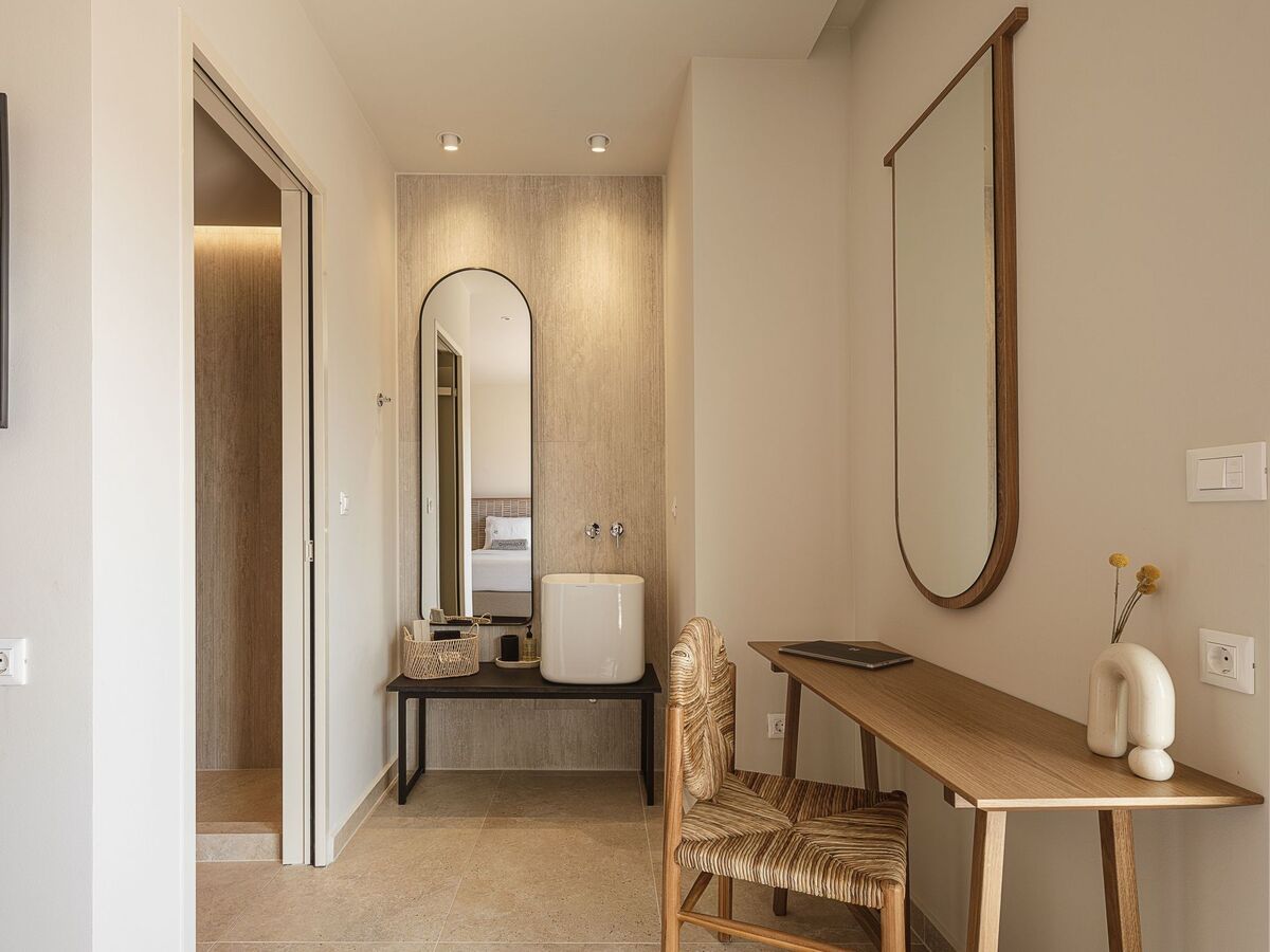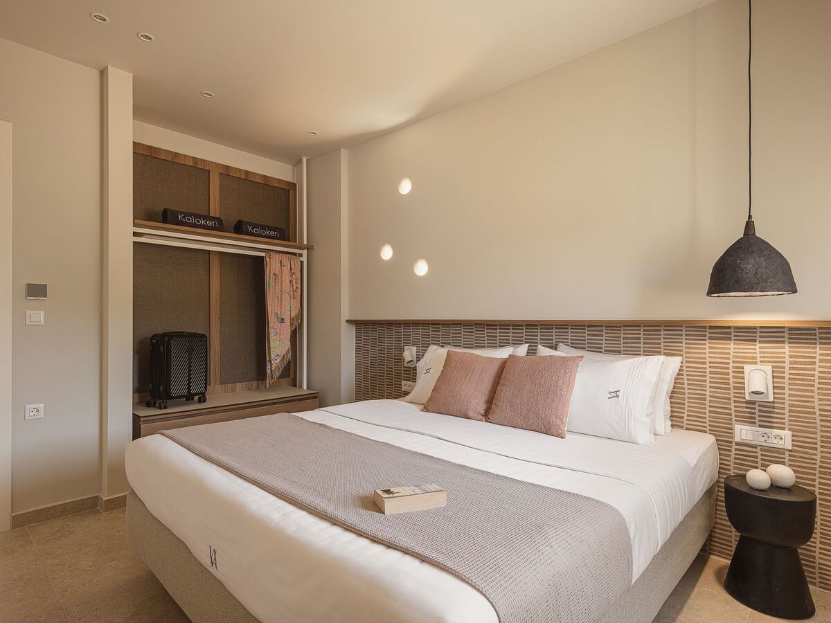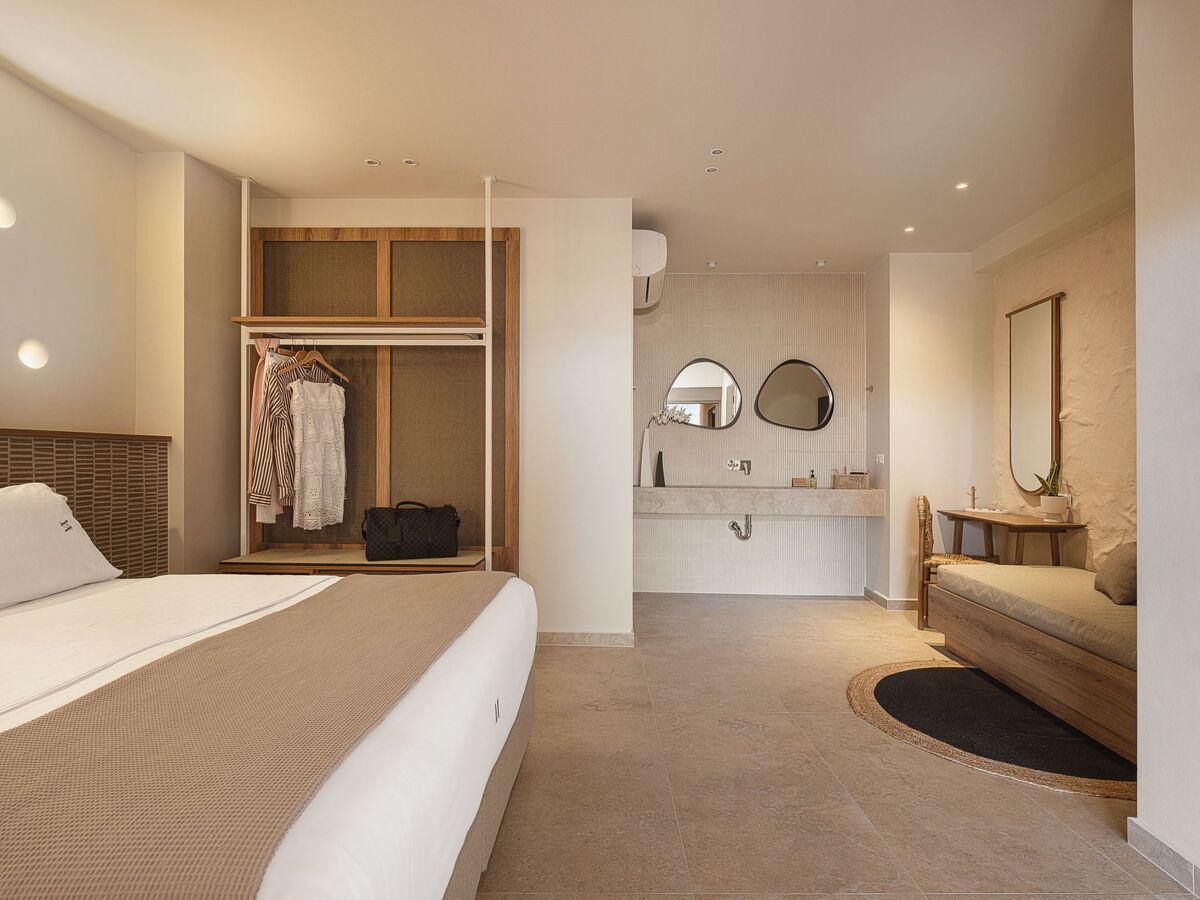 The saltwater swimming pool in the exterior area with the crystalline water is the perfect spot for you to have a dip, soak up the Cretan sun, and feel the summer breeze.