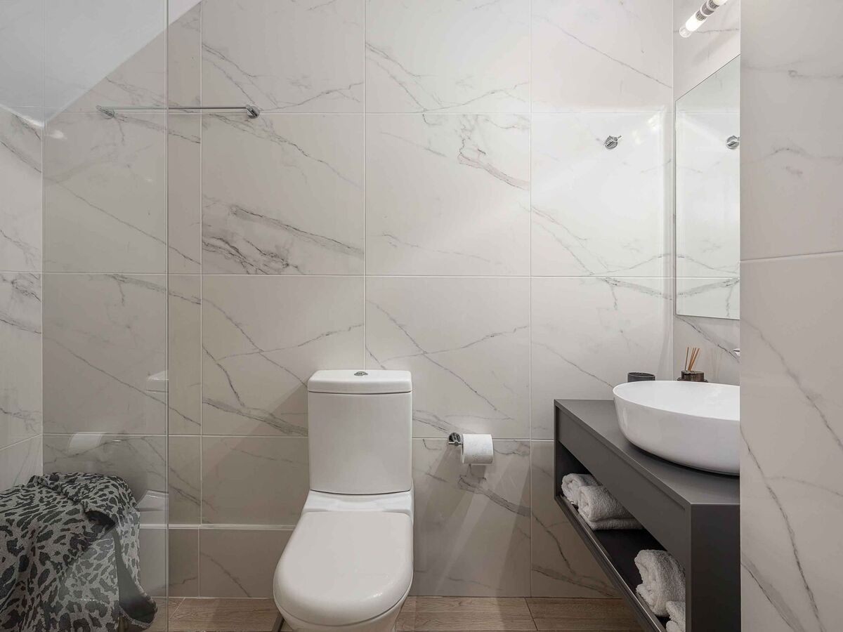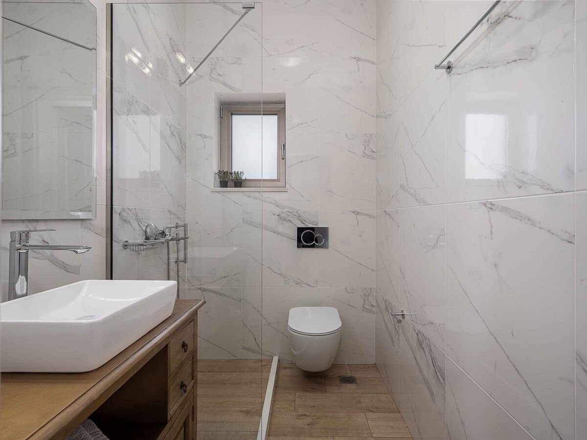 The second and third levels feature beautifully crafted wooden ceilings made from high-quality birch and pitch pine, adding warmth and a natural element to the villa’s design.