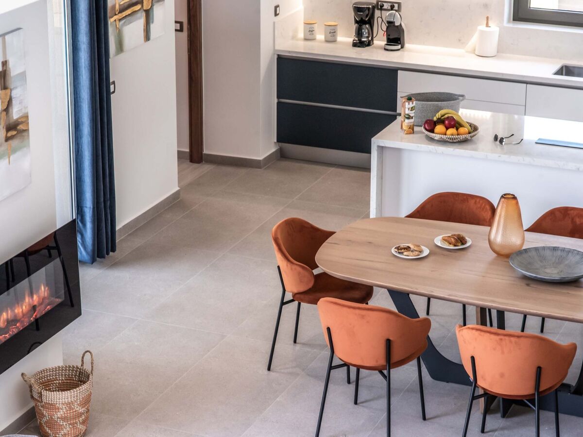 L'intérieur de la villa au rez-de-chaussée est meublé et comprend un salon spacieux avec une salle à manger et une cuisine entièrement équipée.