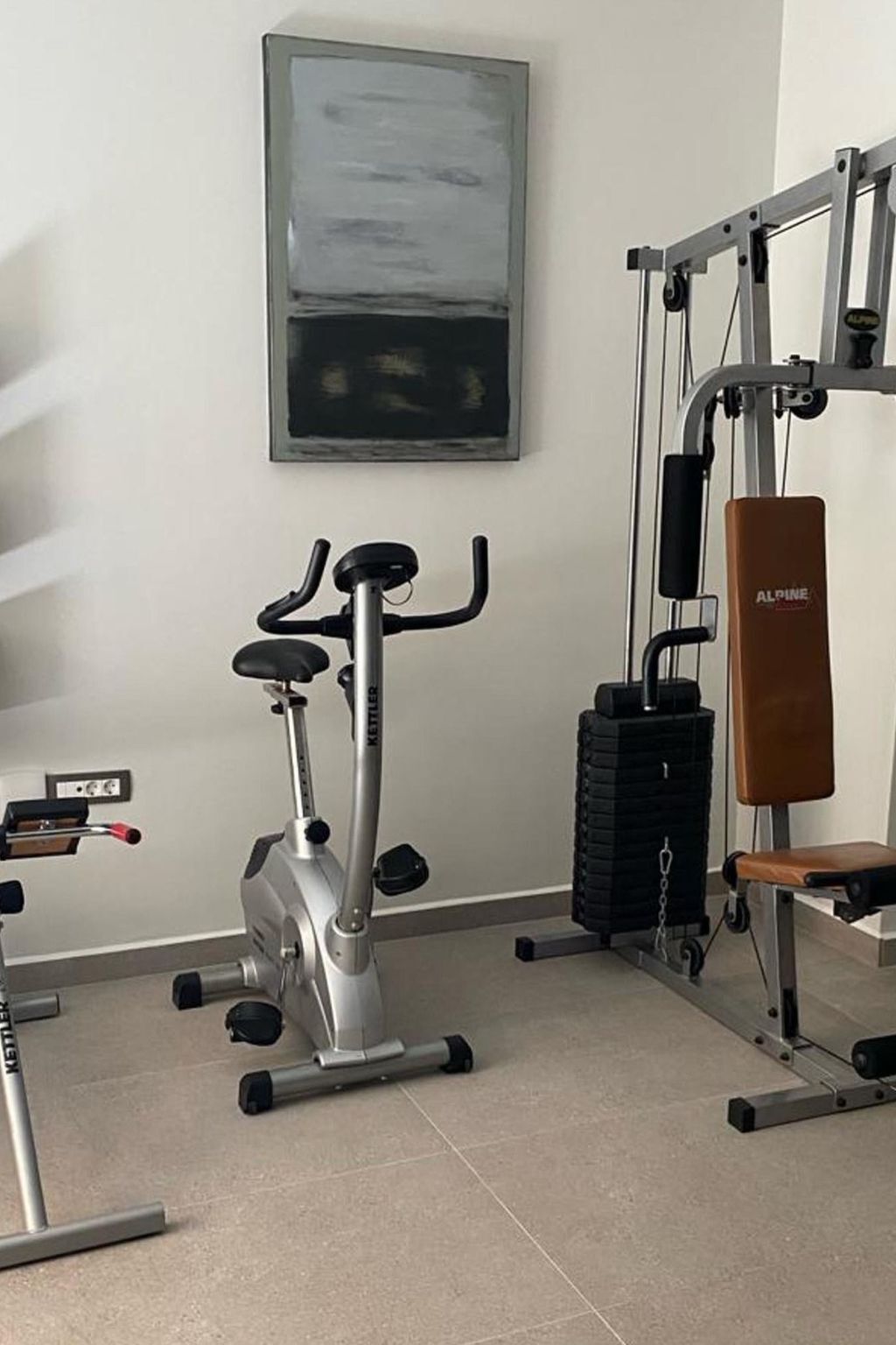 Salle de gymnastique (appareil de gymnastique multifonctionnel, vélo d'appartement, appareil d'extension du dos, haltères)