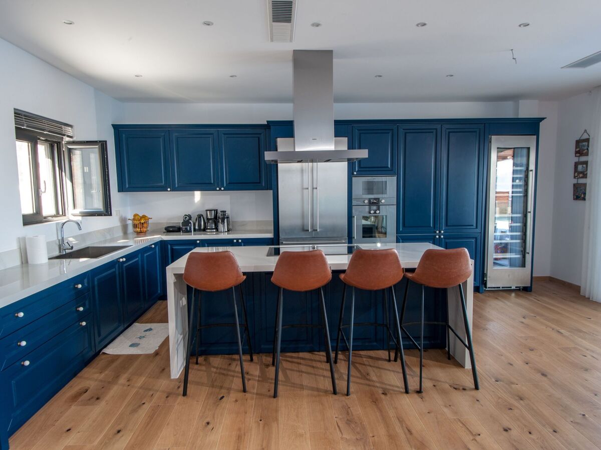 Deluxe handpicked furnishings, modern art, and a top-of-the-range kitchen, in what we can only describe as Aegean blue.The meticulous design of the villa ensures it’s a view you can enjoy from almost anywhere.
