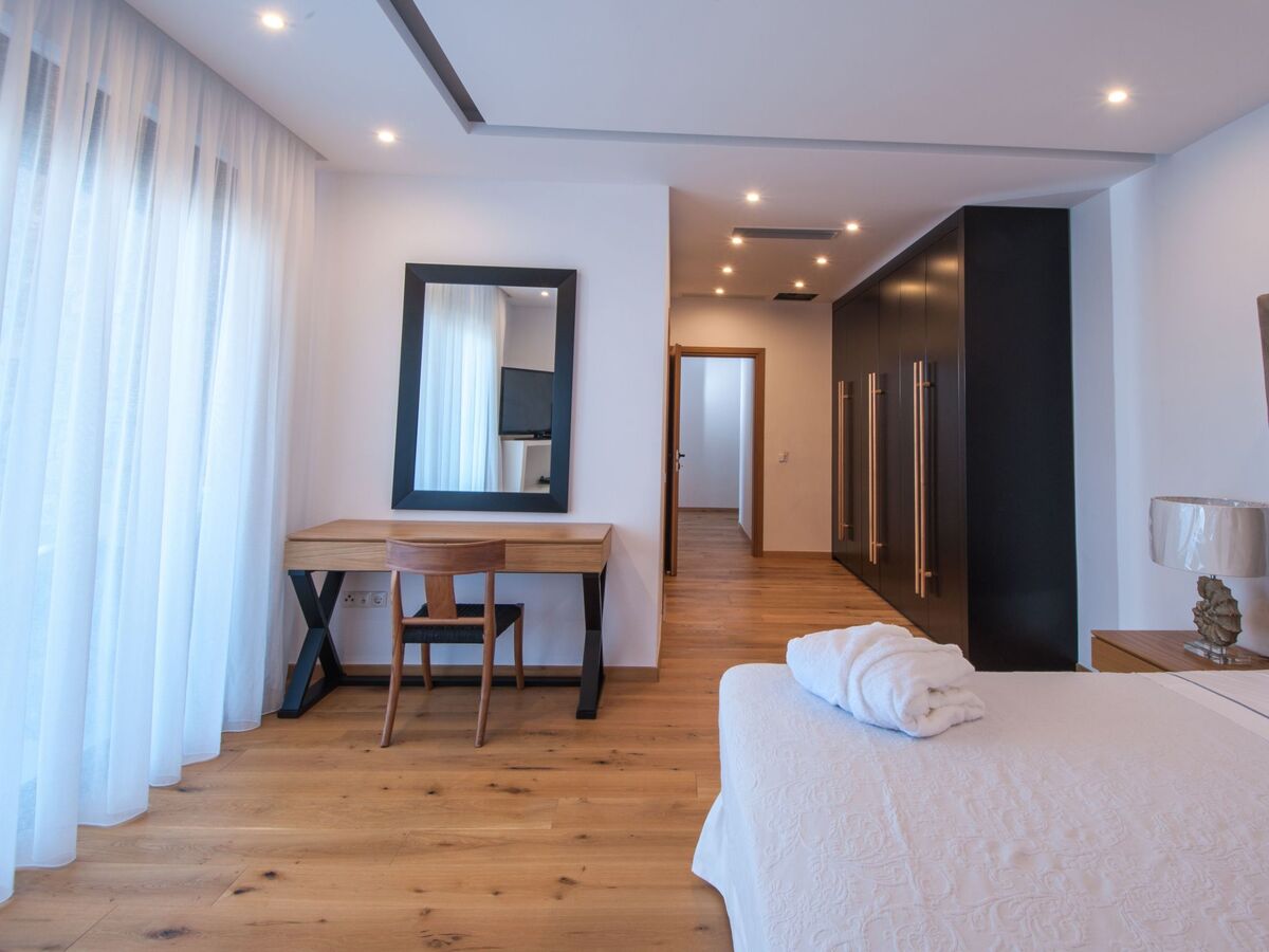 On the lower ground level likewise, a neat and private internal garden leading into a children’s play area runs out towards the sea.Four bedroom suites open out onto this garden area.