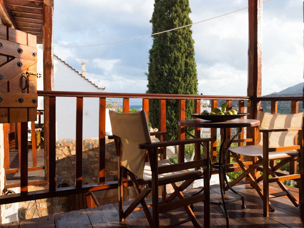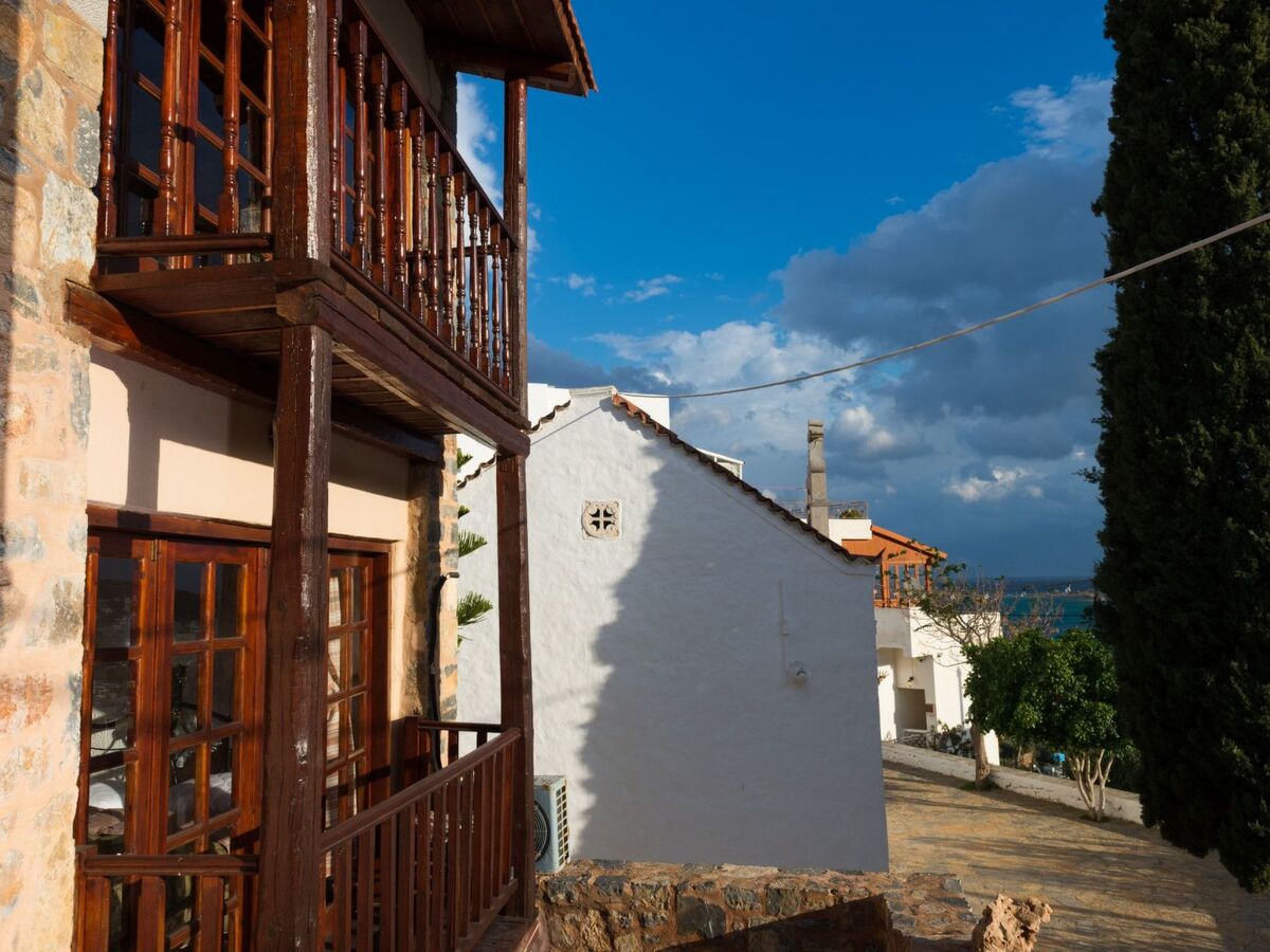 La maison est entourée de balcons donnant sur la ville pittoresque d'Elounda et la baie de Mirabello.