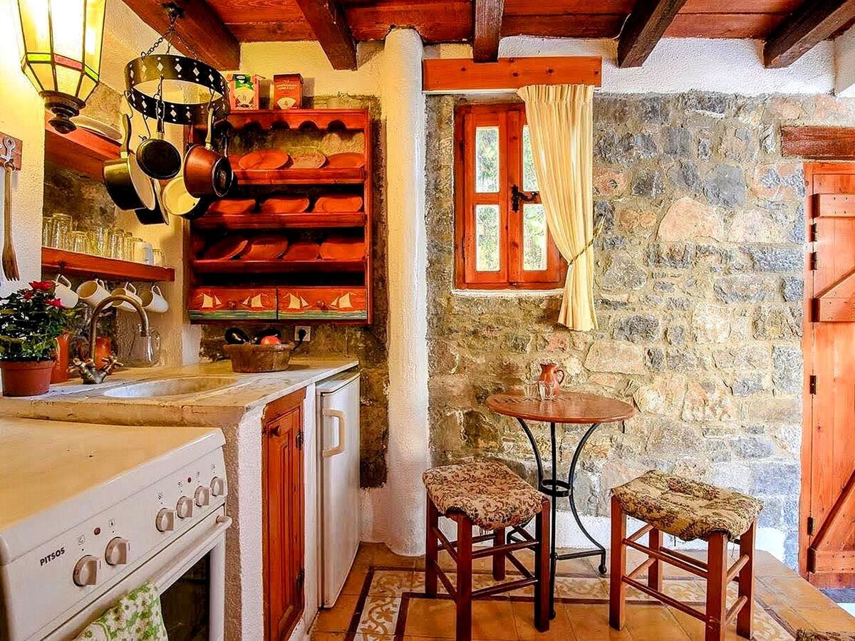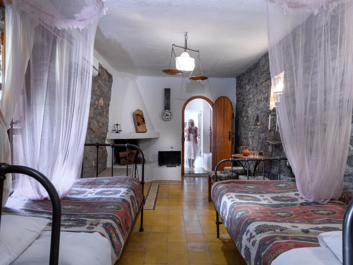 All the furniture are copies of originals found in the Historical Museum of Heraklion, Crete, but the lamps and fittings are original.
