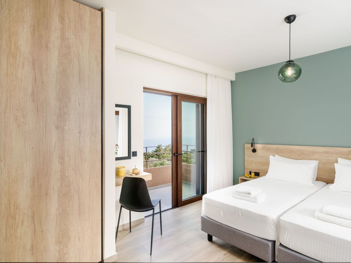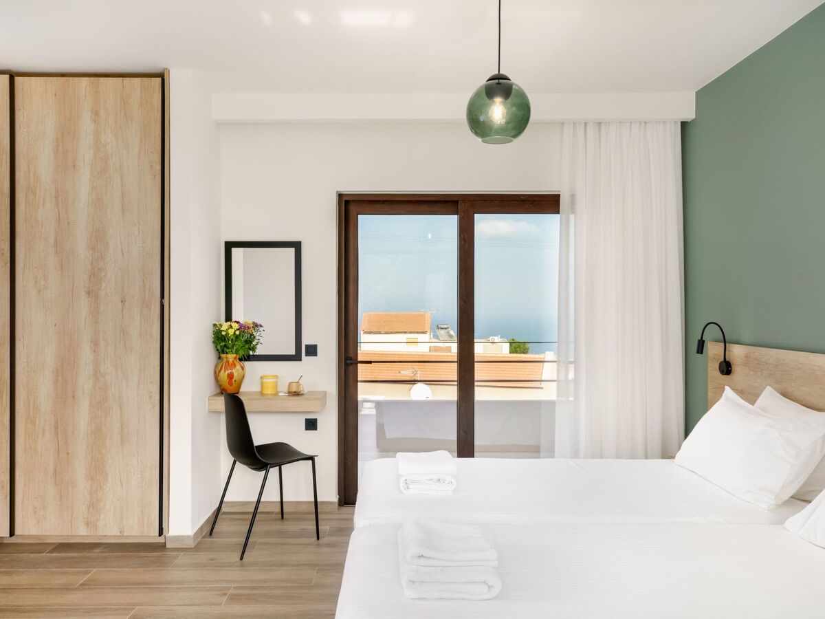 Bedroom 3: Twin-size beds (0.90x2.00), ensuite bathroom with shower, hairdryer, A/C, balcony with Sea & mountain view