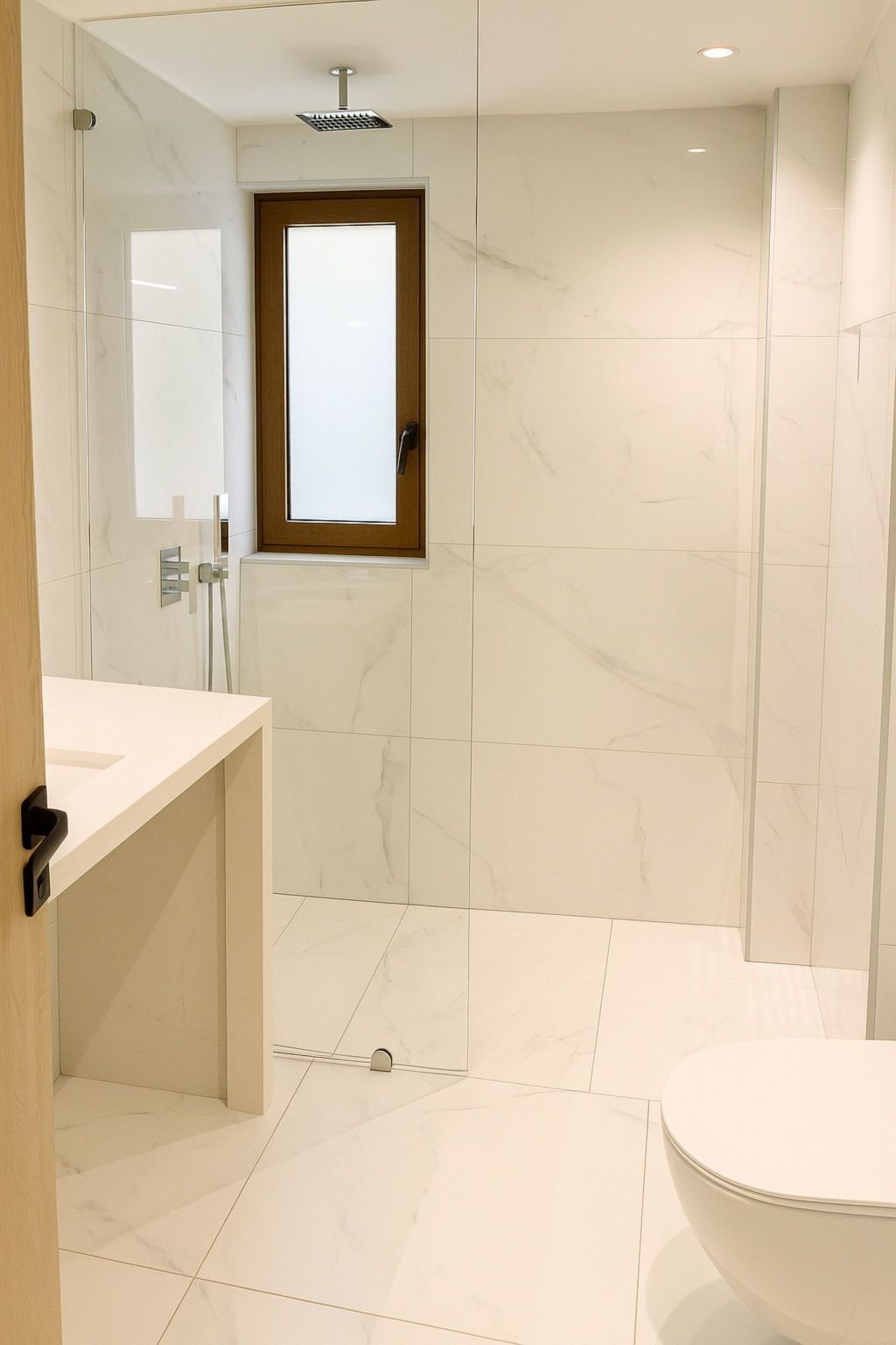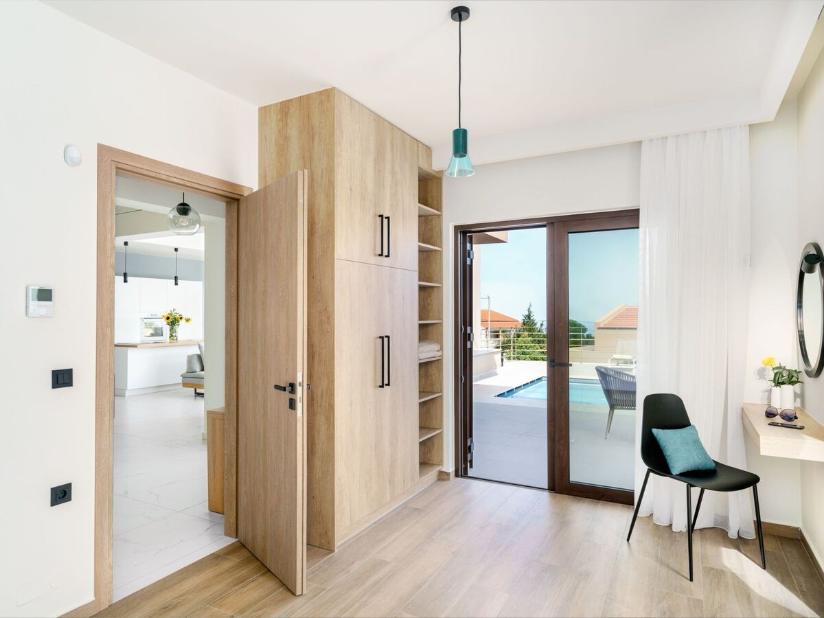 Large sliding doors provide direct access to the pool terrace, making it easy to transition between indoor and outdoor living.