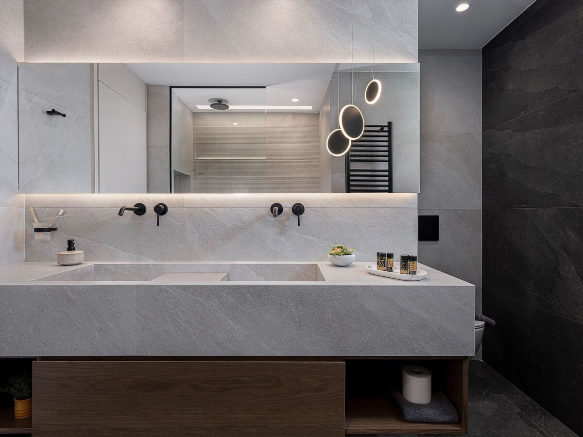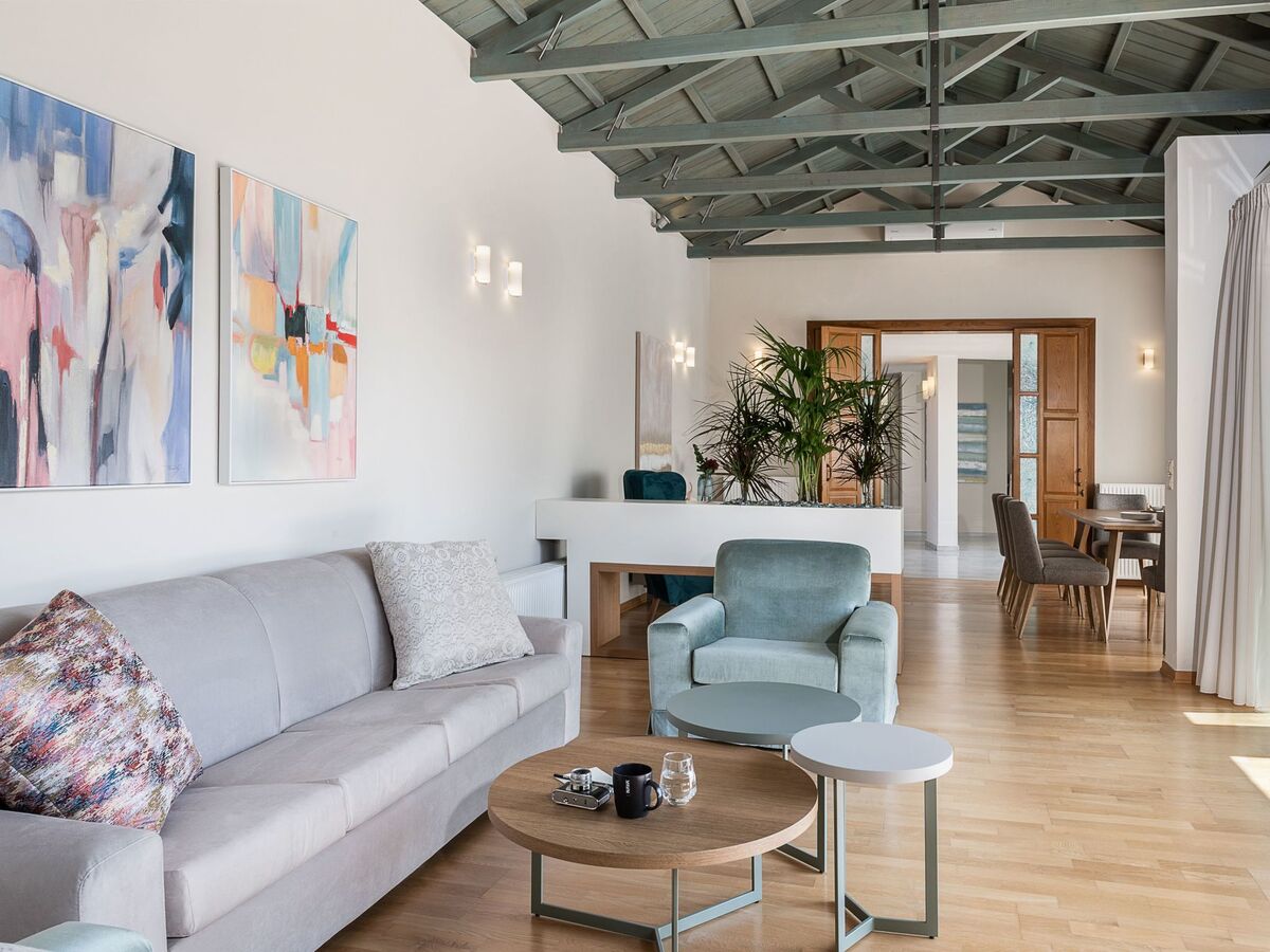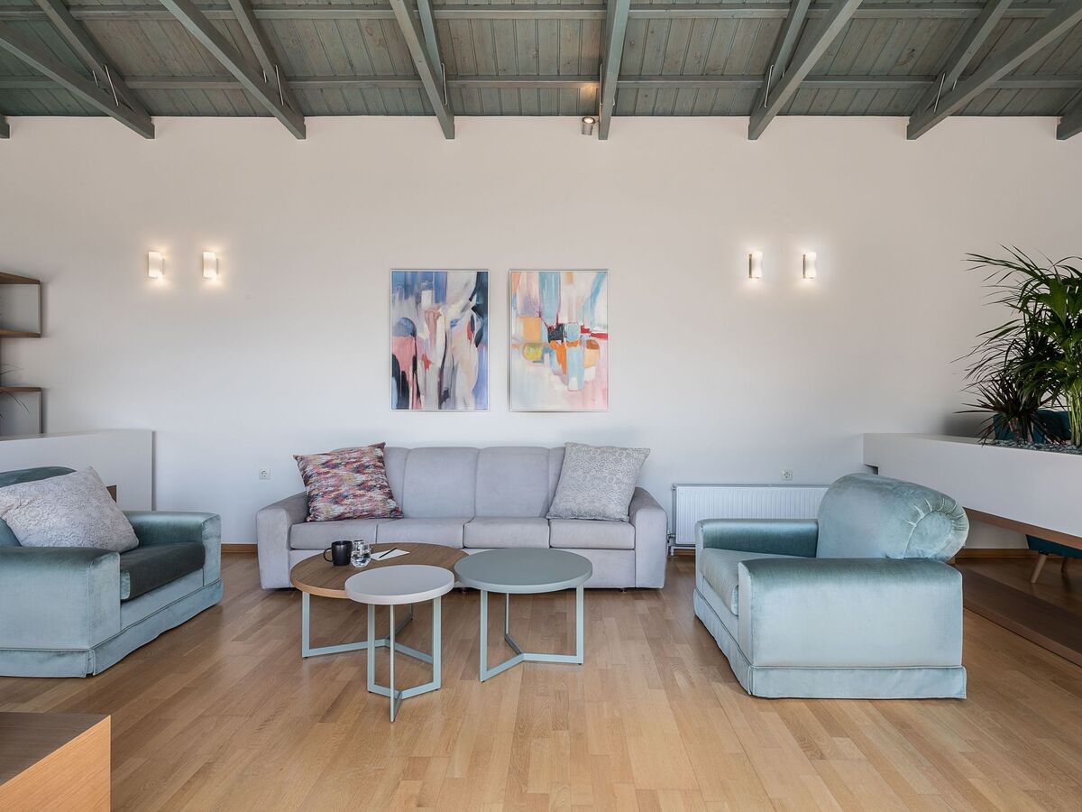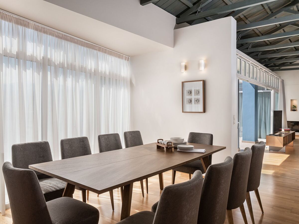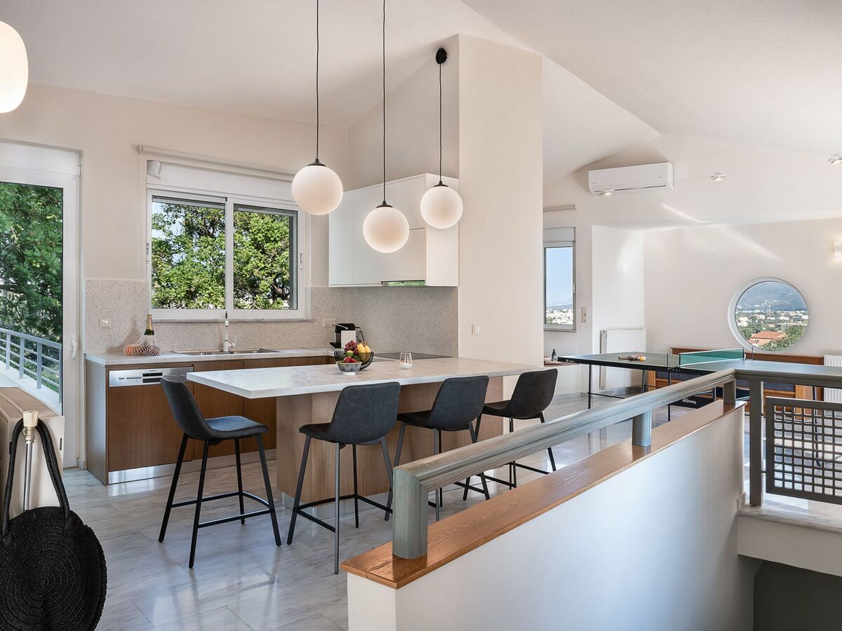 The spacious villa has a fully equipped kitchen with a dishwasher, an oven and a microwave, 2 living rooms with a seating area and a dining area, 5 bedrooms, and 5 bathrooms.
