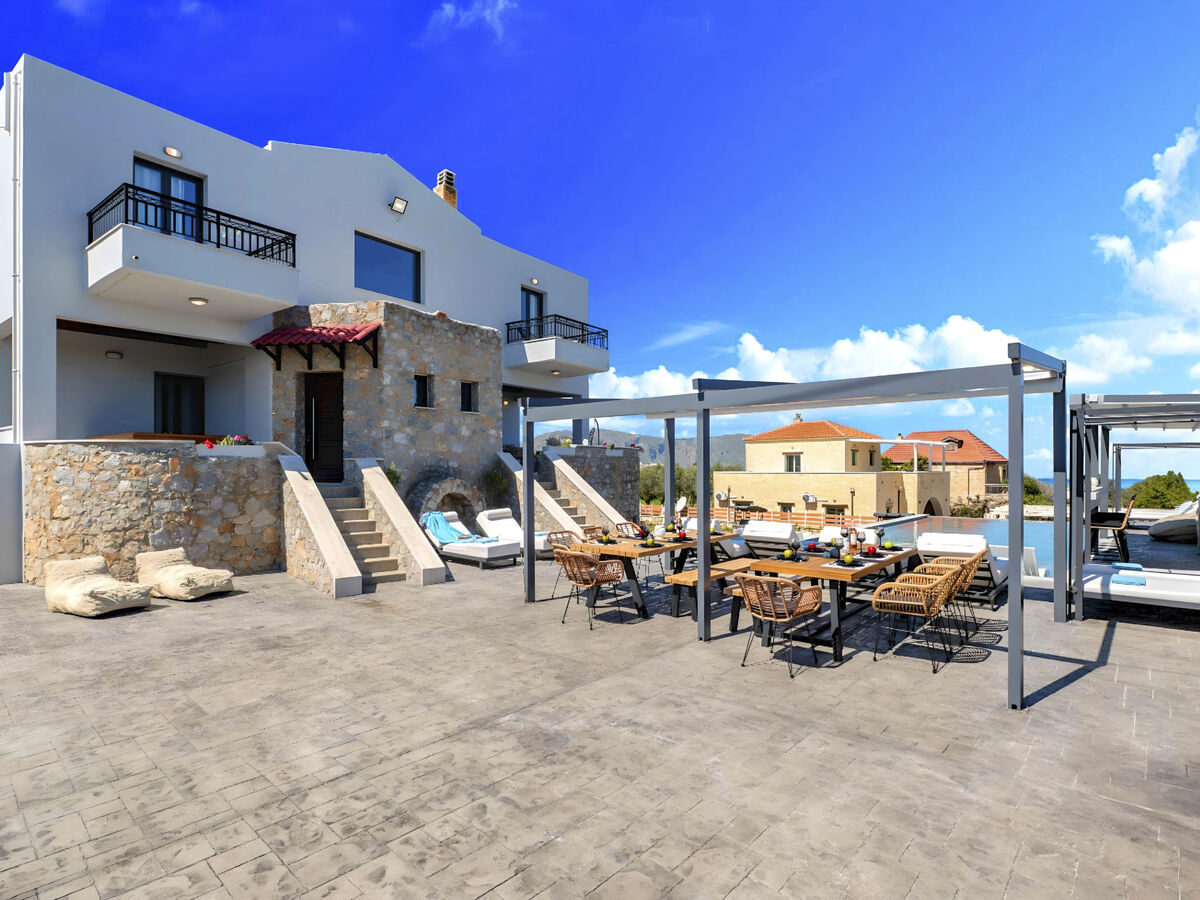 Welcome to the enchanting Grey Grand Villa, perfectly nestled above the captivating Georgioupolis beach in Crete, where breathtaking sea views await to mesmerize you.